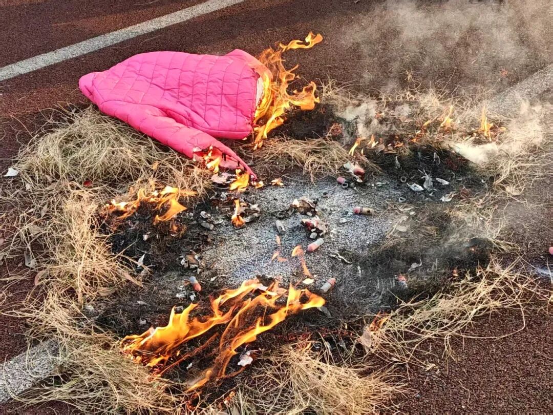 在铺设杂草、衣物的空旷区域规范点燃
