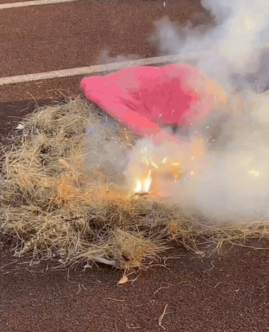 高温火星瞬间引燃周边易燃杂物
