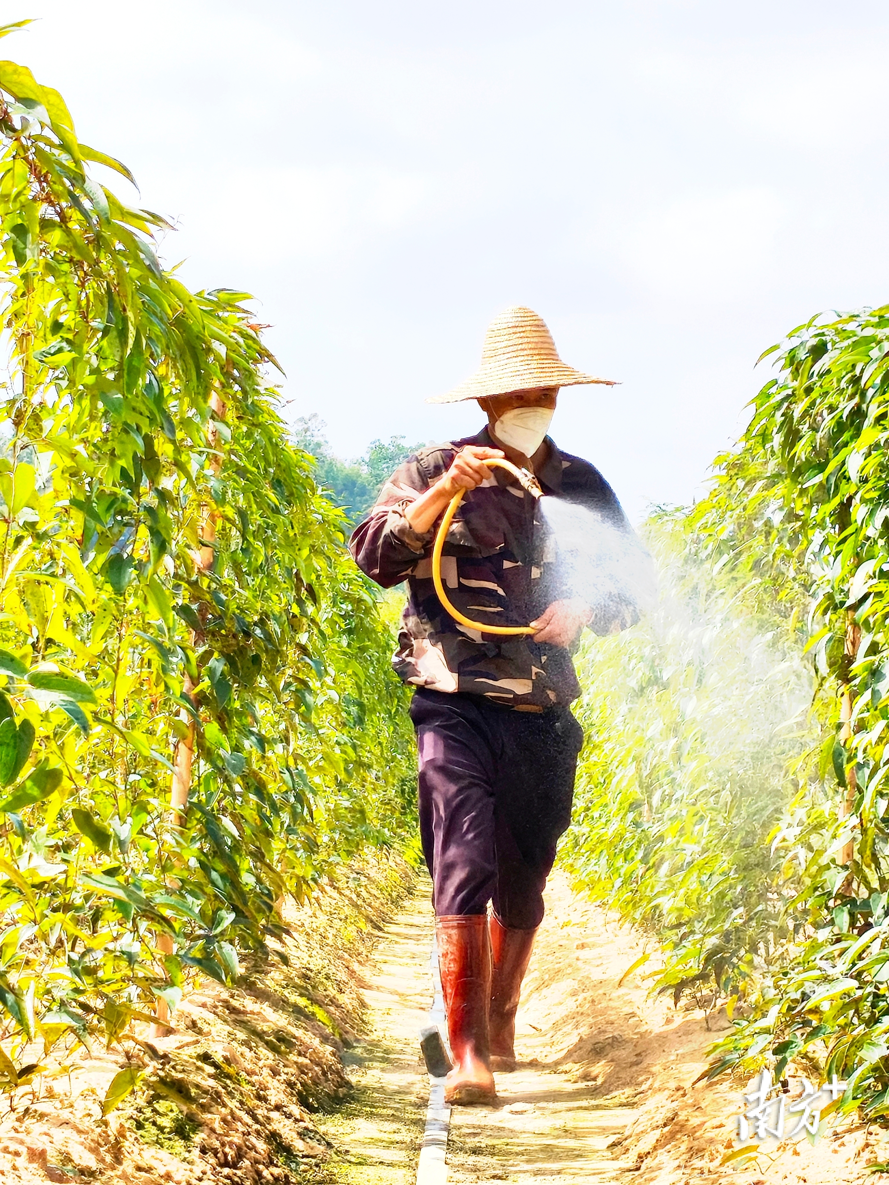 蔡文天抢抓农时,在田间喷洒药液管护淮山。 受访者 供图