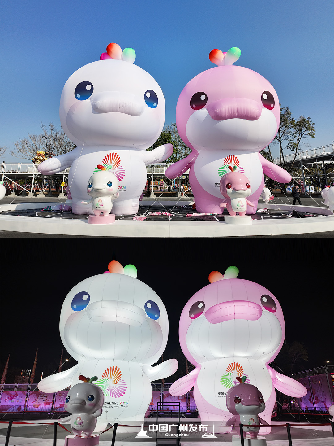 晚上18:30,嘉年华就会开启夜游模式,夜游装置纷纷亮灯,10米高的“大湾鸡”气模、6米高的巨幅“大湾鸡”打卡墙,也将在夜间被灯光照亮。晚上的旋转木马,真的好梦幻!新的一年里,祝大家独占鳌头!十五运会开幕式原版鳌鱼回归嘉年华现场,灯光映衬下更具氛围感。温馨提醒:如遇四级以上大风或下雨等恶劣天气,鳌鱼将暂停展出哦。国际大马戏也搬到了嘉年华现场!专业团队将呈现高空特技、惊险杂技等表演,“大湾鸡”也会客串演出哦!