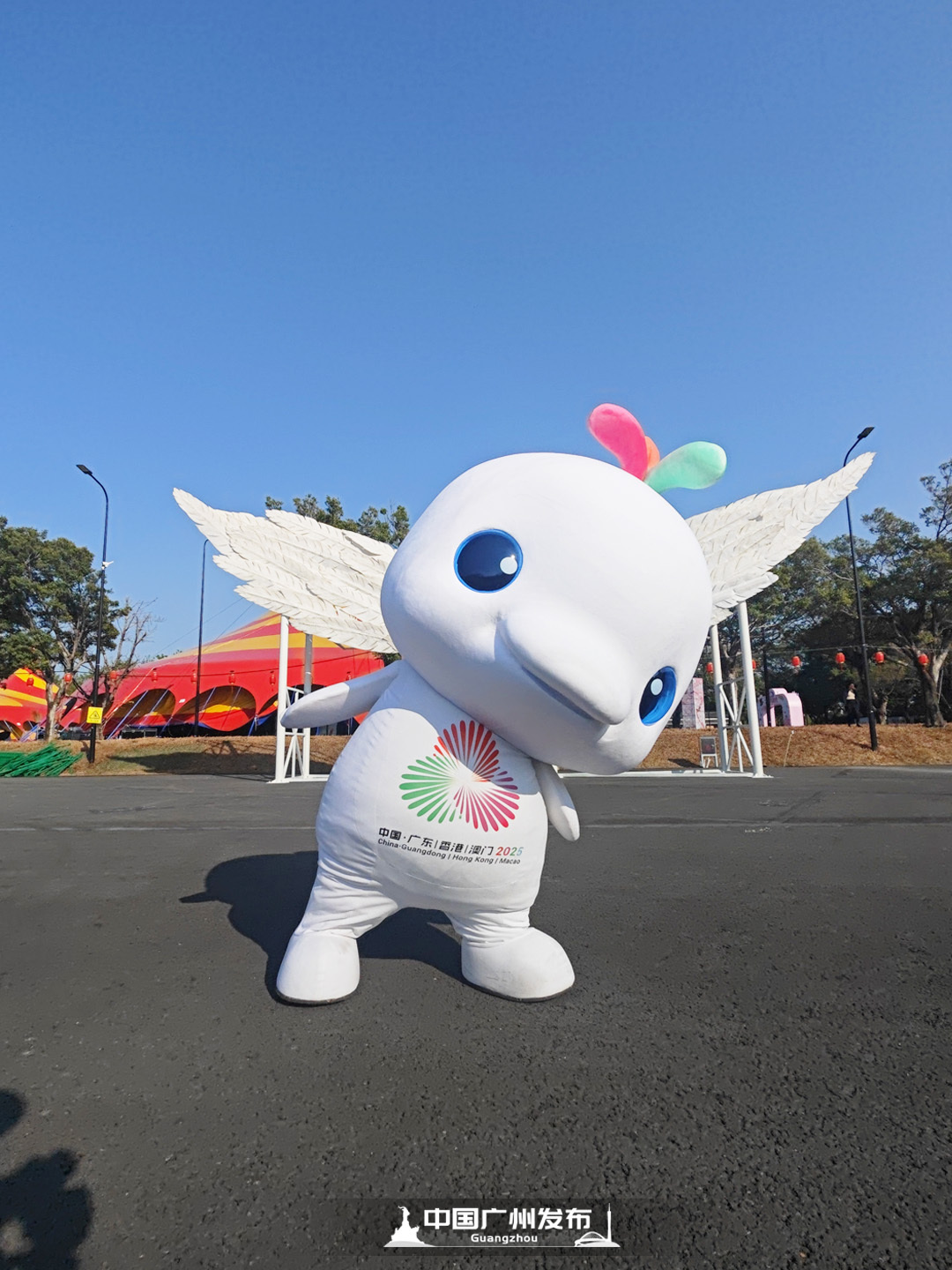 嘉年华分为日游和夜游,完全是不同的体验!白天更适合喜欢追“鸡”的朋友,园区内有“大湾鸡”人偶驻场互动,通过萌趣表演、合影打卡等形式拉近与市民游客的距离。园区设置了丰富的机动游乐设施,涵盖亲子互动、球幕影院等多种类型,适配儿童、青少年及家庭游客的不同需求。很出片的巨型翅膀,一定要放在白天打卡,咔嚓!“大湾鸡”宝宝同款的“人生照”就诞生了!在新的一年,祝大家展翅高飞!园区还规划了多个观景打卡点,以奥体中心标志性建筑为背景,搭配春节和全运主题装饰,为市民游客定格美好瞬间。