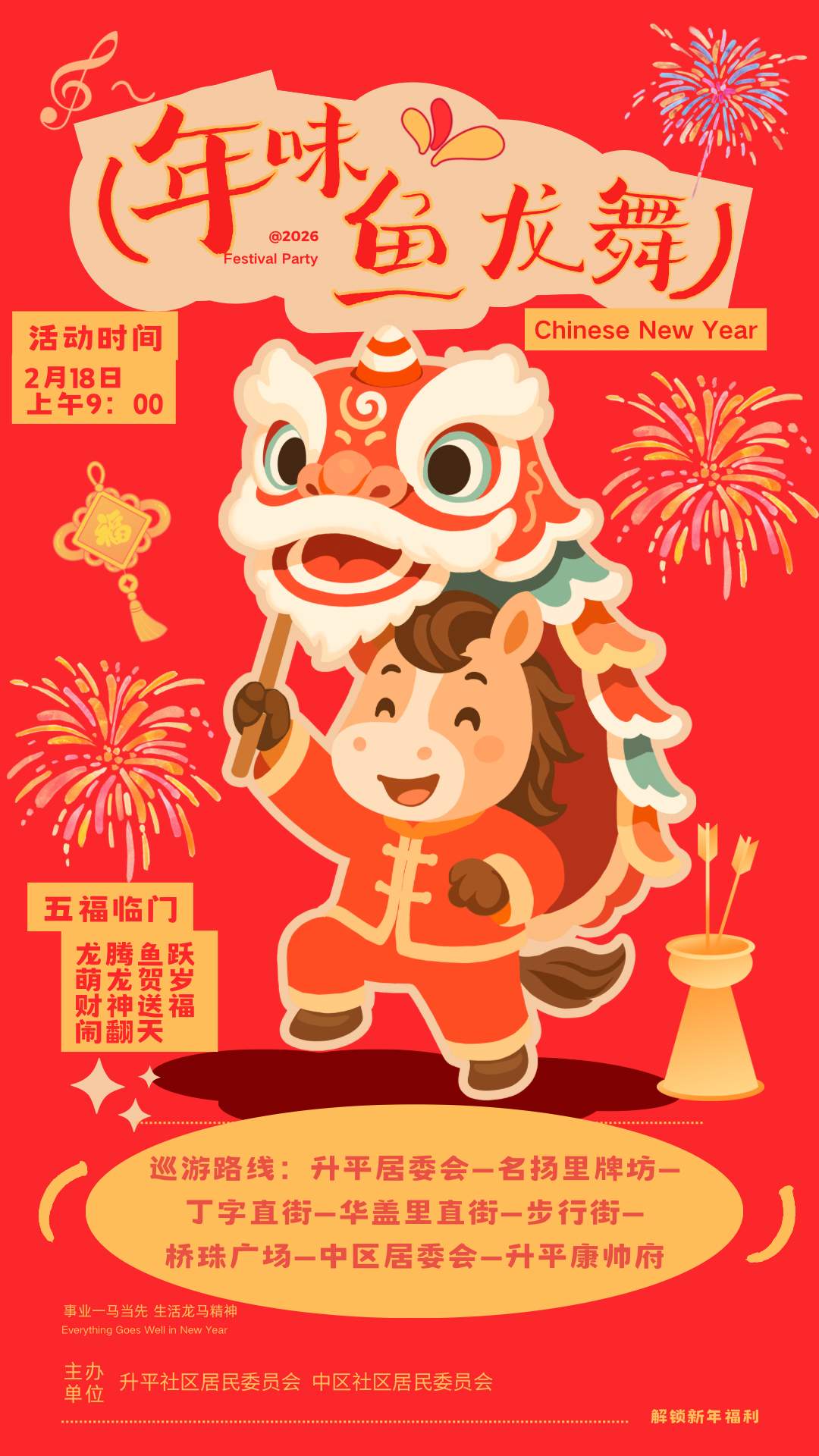 活动详情→【年初二活动预告】升平社区大年初二醒狮+萌龙+财神送福闹翻天