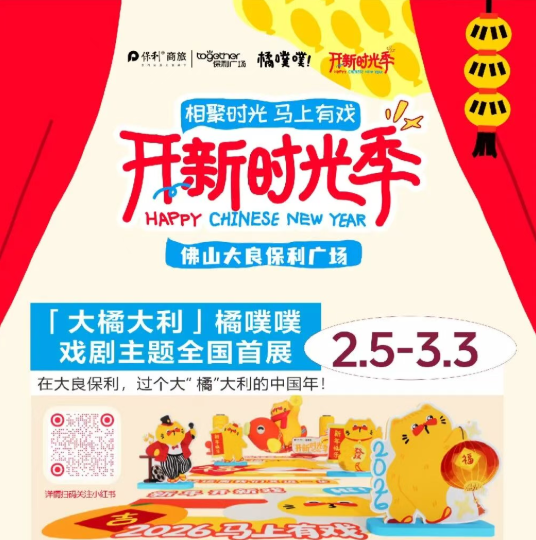 2月5日-3月3日「大橘大利」橘噗噗戏剧主题全国首展,来大良保利广场,过个大”橘"大利的中国年!此外,年初一到正月十五还有多场主题活动,承包你的马年新春欢乐。