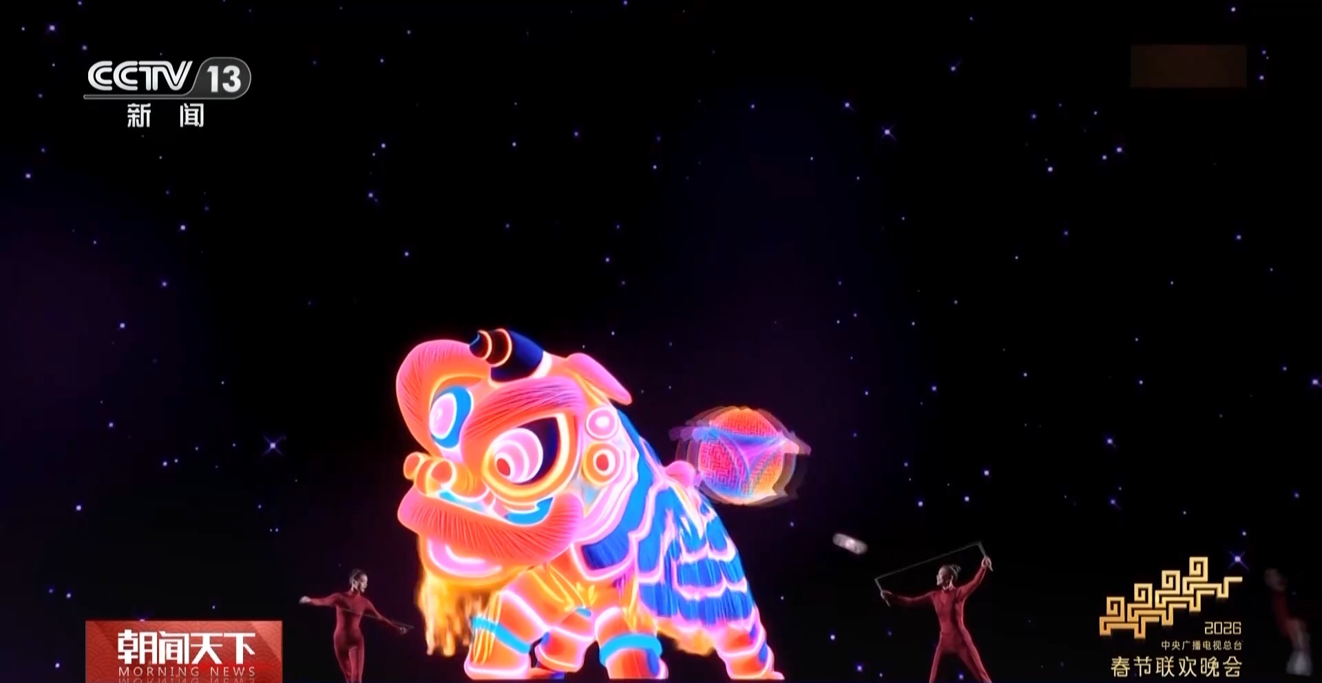 总台《2026年春节联欢晚会》视觉导演 国丽:《绘新春》是一个很有意思的中外结合的传统文化以及年俗类节目,同时融合了实时动态捕捉以及影像生成的技术,把杂技和视觉融合起来,通过捷克棒以及空竹的快速运动和不确定性,勾绘出春节元素,展现了一幅一幅春节图景的感觉,然后最终呈现给大家。
