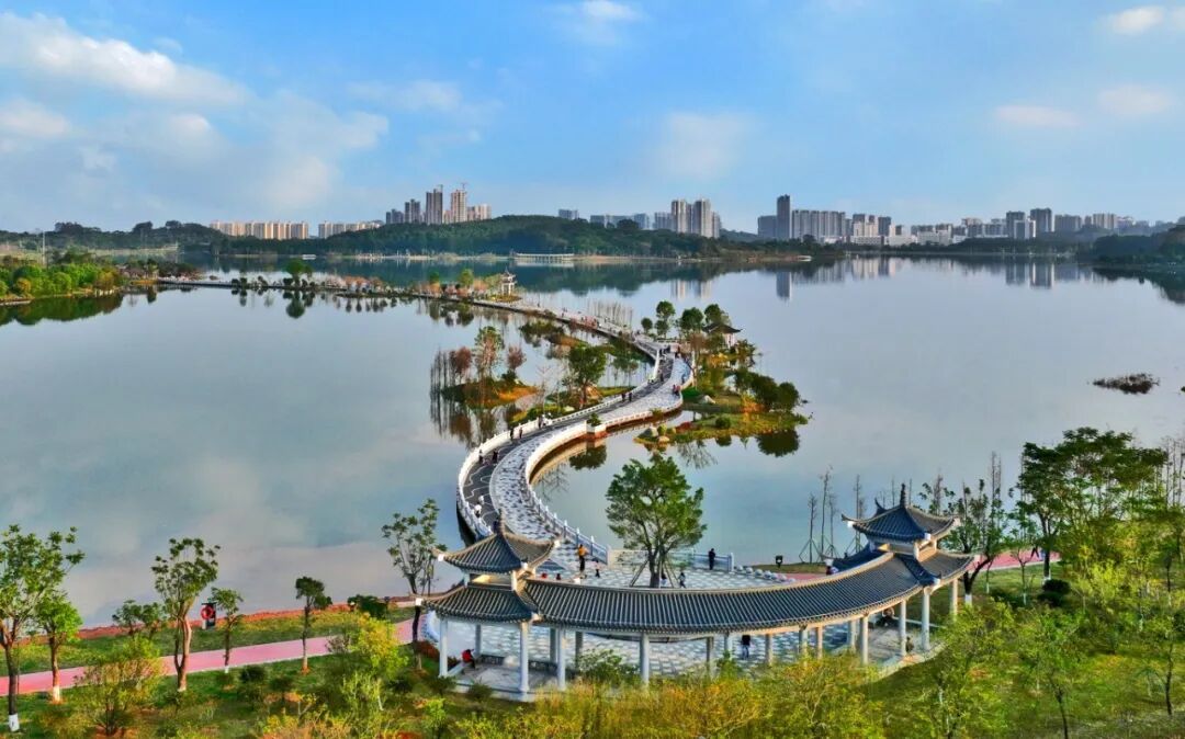 10公里环湖绿道串起四季花海与生态湿地,木棉、凤凰木、桃花次第盛开,30万株苗木与12万平方米绿地,铺就一幅生机盎然的流动生态画卷。