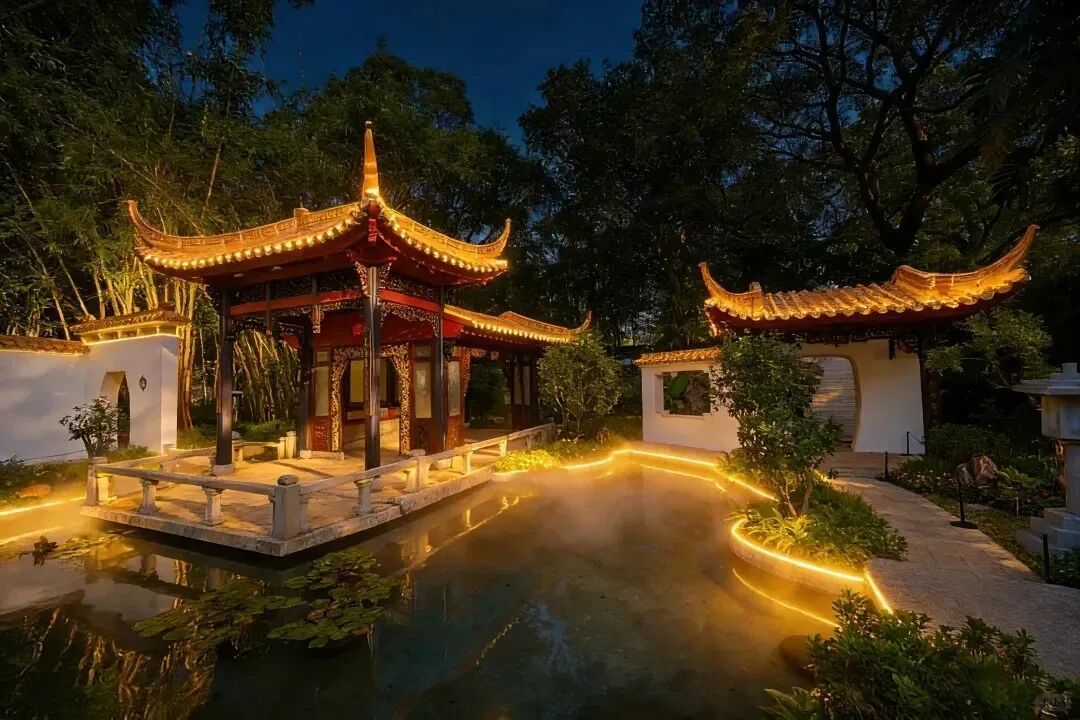 白墙黛瓦隐于林木之间,拱门、回廊、水榭错落有致。穿行其间,宛如走入一幅写意诗画。园内景致清幽,尤其值得一探的,是近期焕新开放、曾获国际金奖的芳华园。