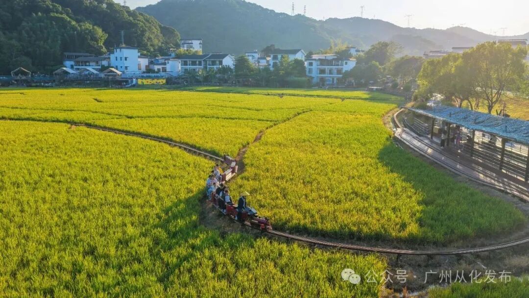 作为“百千万工程” 实践成果的生动范本,米埗村藏着最鲜活的田园浪漫:白墙黛瓦错落有致,稻田与村落相映成趣。你可以在此乘坐复古小火车穿梭于金色稻浪间;游船漫游在流溪河上,领略“巍巍青山两岸走”的诗意画面。