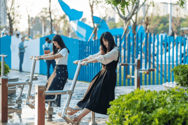 在健身长廊、儿童游乐区度过