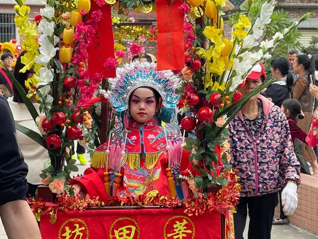 正月初四(2月20日)中午12点起,众涌春色巡游队伍将从天后古庙出发。由每个村小组孩童组成的“色仔”“色女”,将身穿戏服扮演成包括穆桂英、哪吒、唐伯虎、狄青、永宁公主、嫦娥等各式造型生动的历史、神话人物角色,坐上彩车,配以彩旗、罗伞等,绕着村内大街小巷来回巡游。
