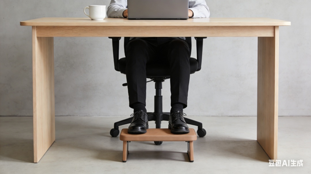 如果椅子过高,可在脚下放个小板凳,让大腿与地面平行。这种情况下跷二郎腿,腿会不舒服,自然就不想再跷了。