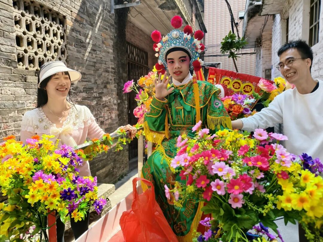 “众涌春色”迄今已有100多年历史,于2020年入选顺德区非物质文化遗产名录。今年巡游在保留传统仪仗的基础上,新增了“飘”在空中的“仙女散花”表演环节,寓意向民众播撒吉祥与祝福。