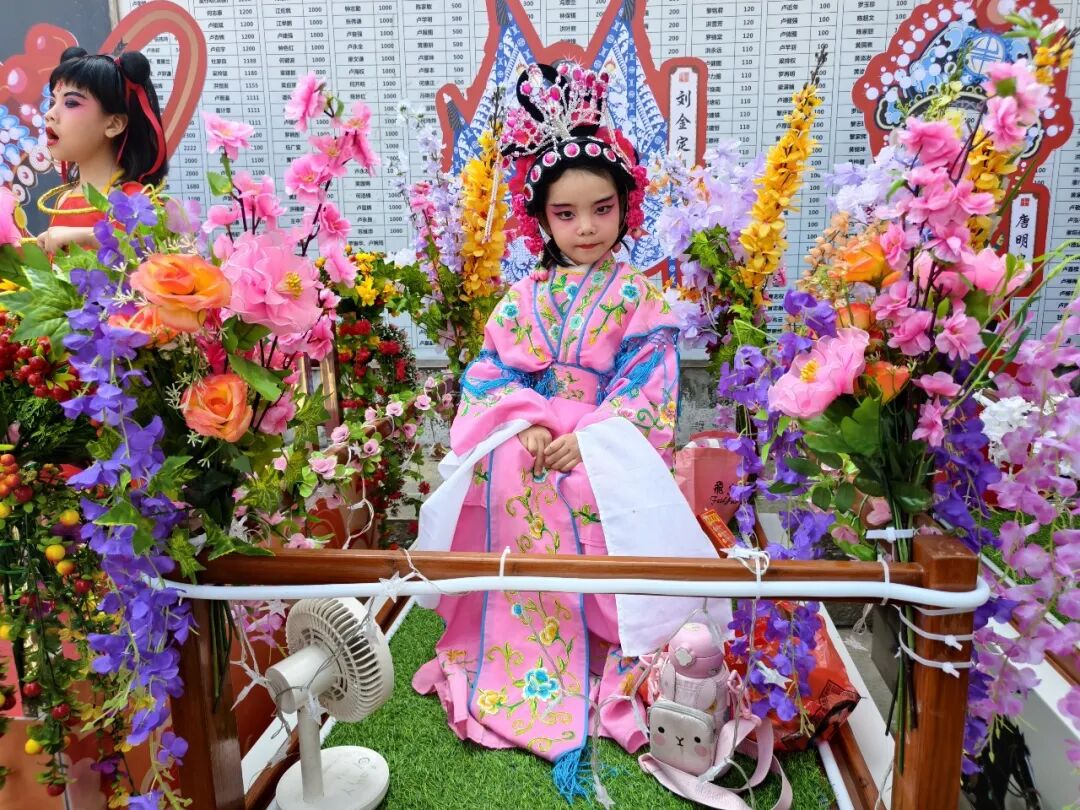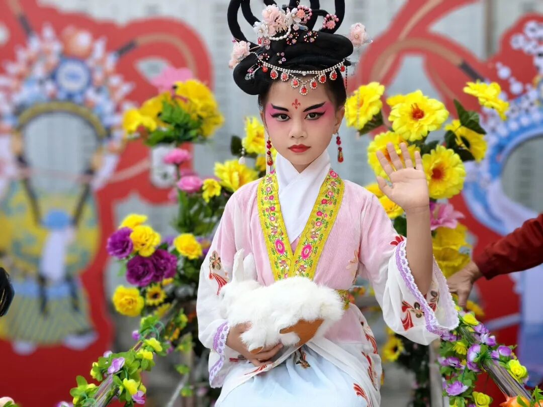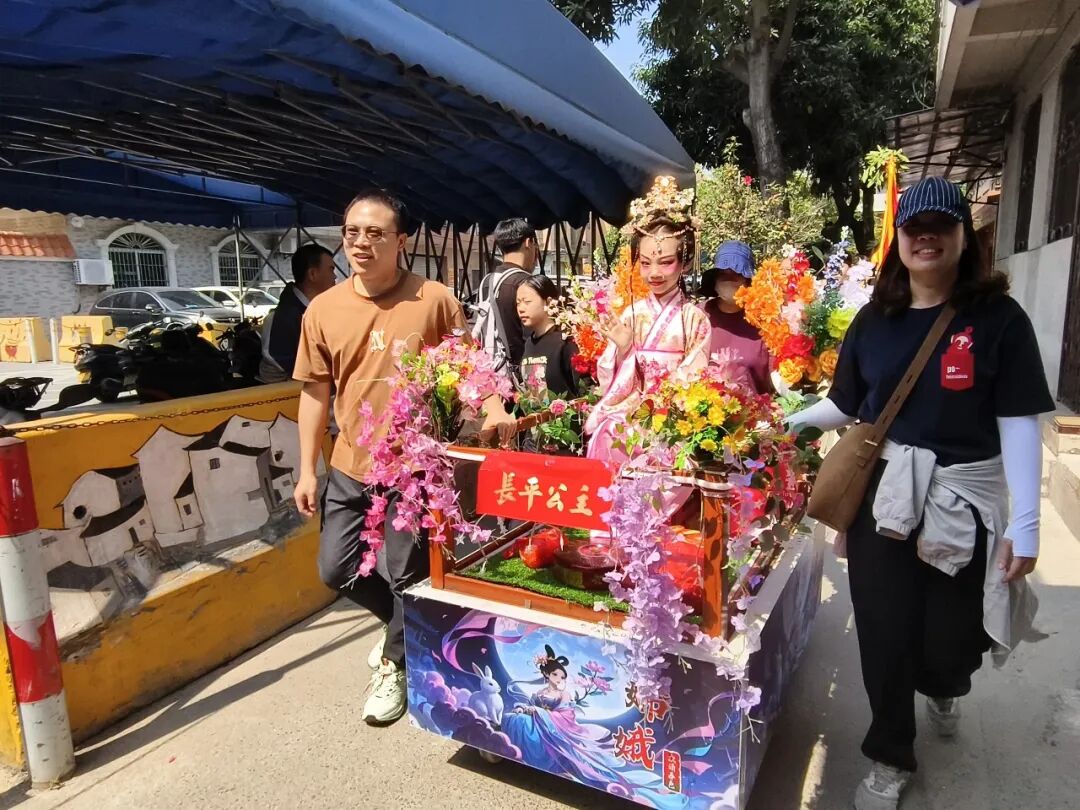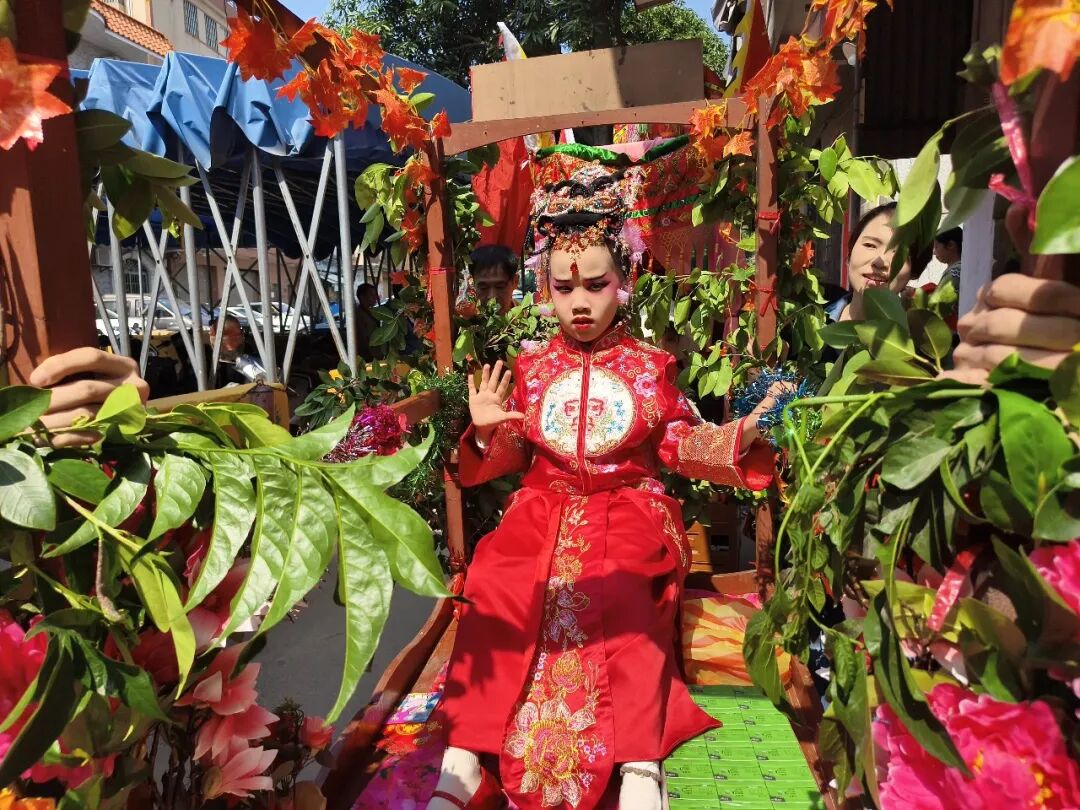 最具看点的当数彩车巡游。车上由各村小组选出的6至10岁孩童扮演穆桂英、哪吒、杨宗保、狄青、永宁公主、嫦娥等历史与神话人物,他们身着戏服、装扮生动,为沿途群众送上别具一格的新春祝福。