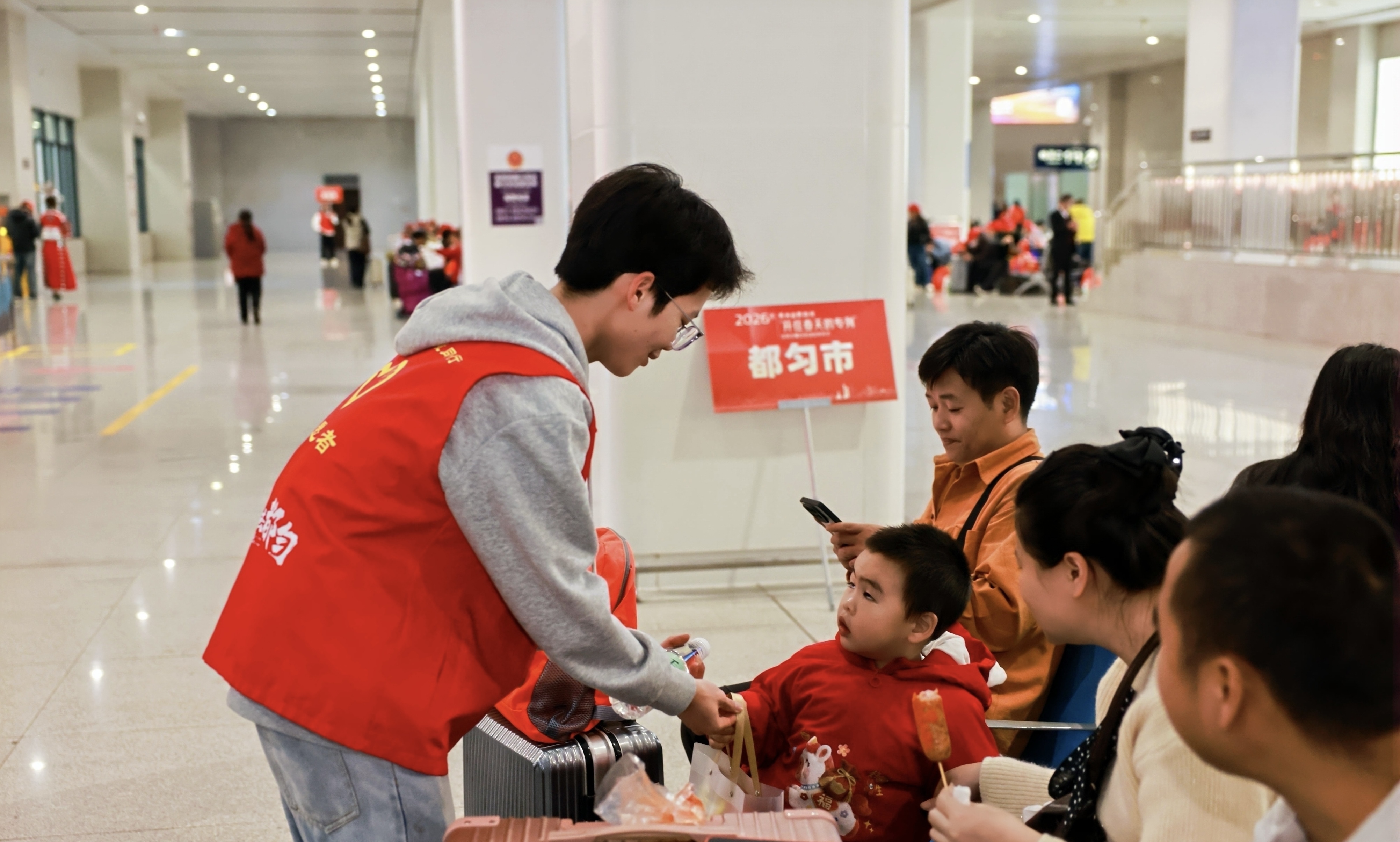 收到列车上发放的食品、水杯等爱心礼品,刘女士开心地说:“政府组织免费回来,真好!今年要多奋斗,多赚点钱回去给家人。”简朴的话语里,满是对新年的期盼。