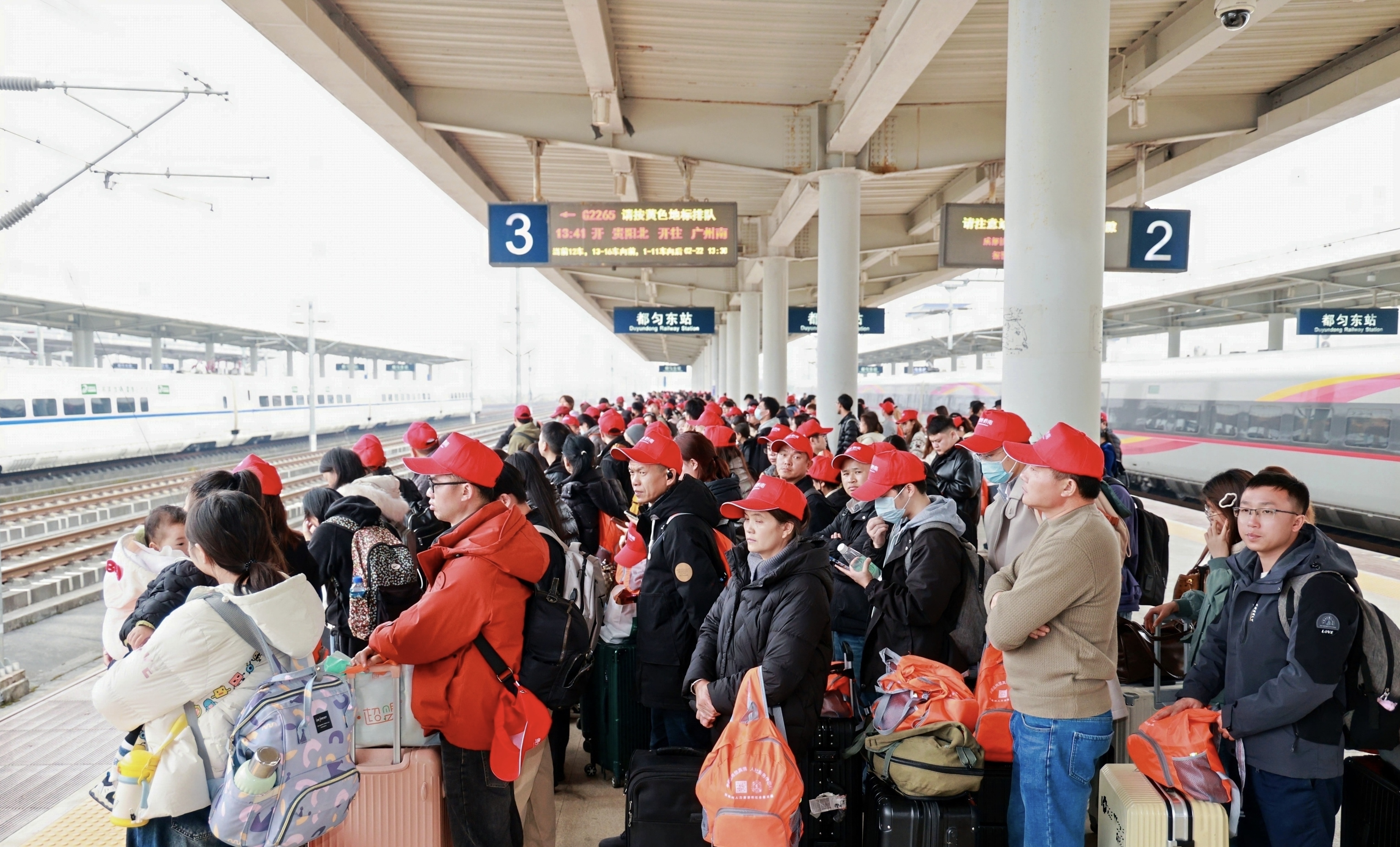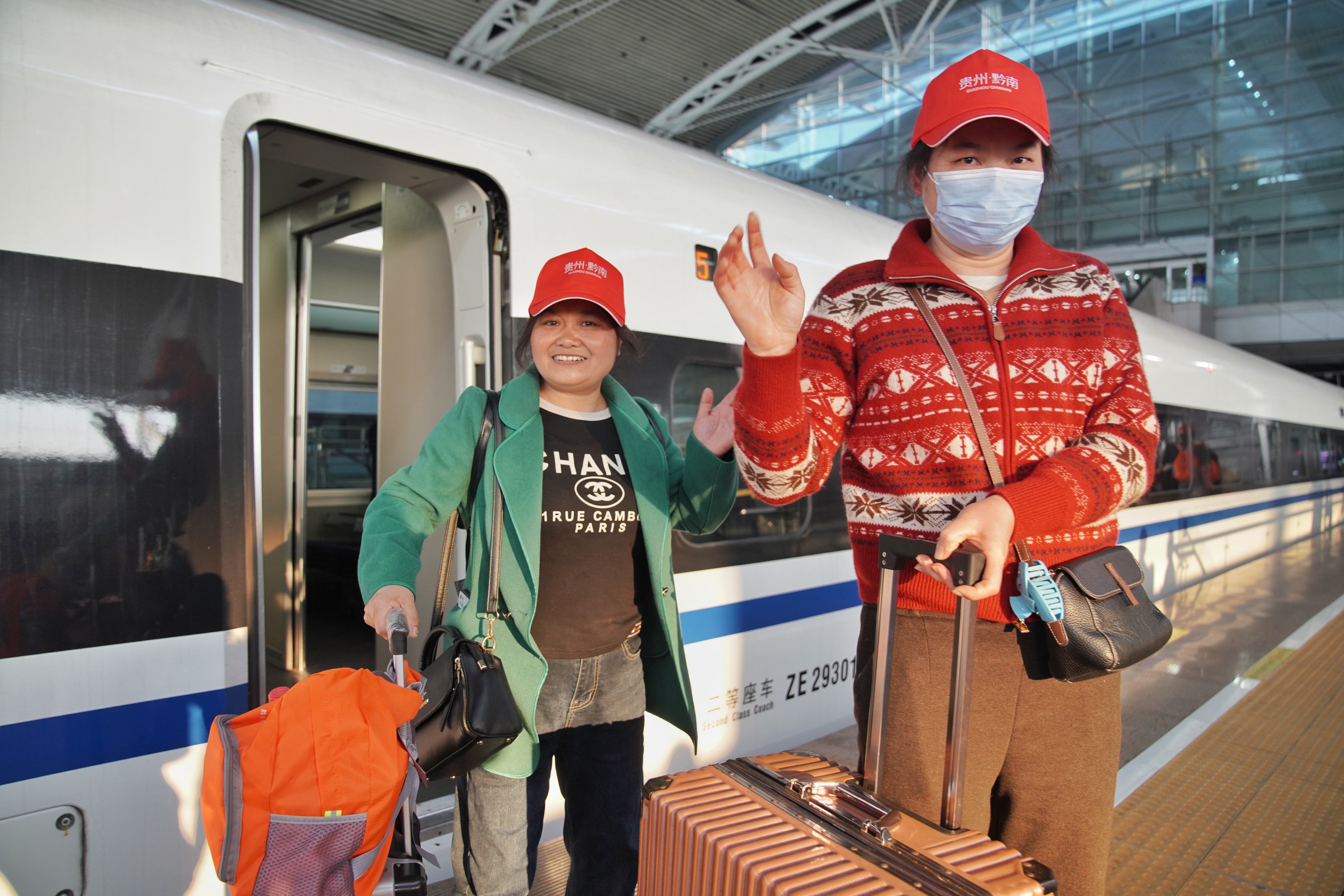2月22日(农历正月初六),满载着约600名贵州籍务工人员的“山海心连 穗黔同行”返工专列(G2265都匀东——广州)准点驶入广州南站。
