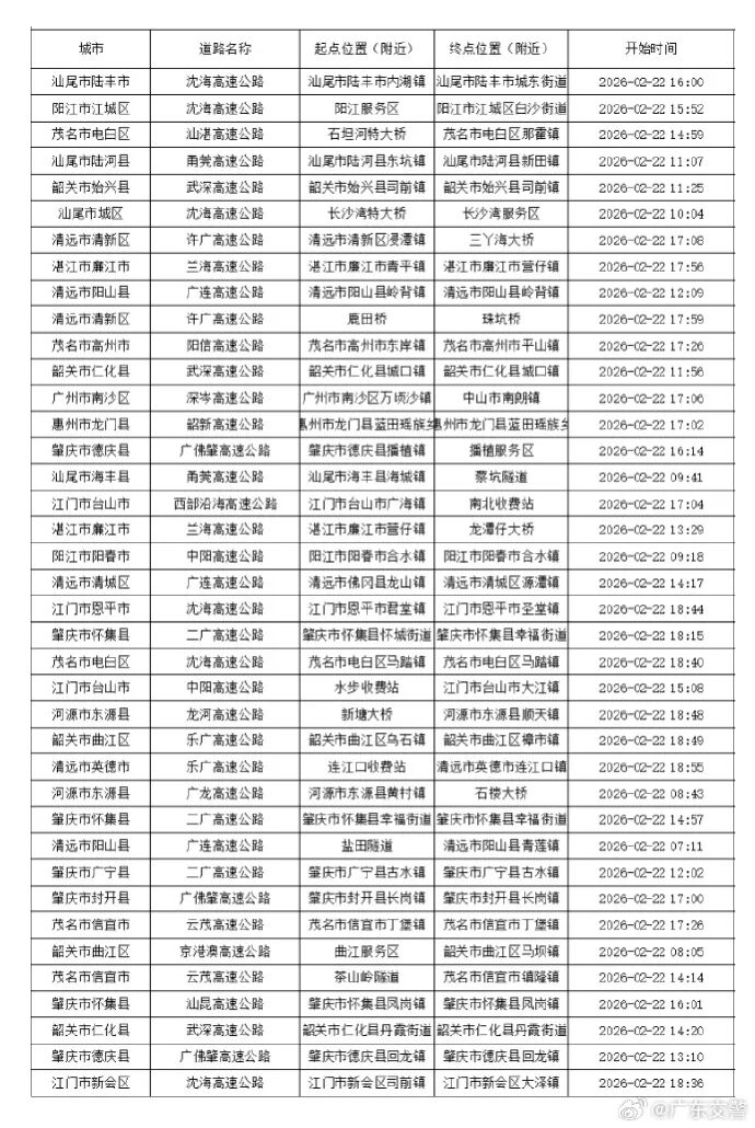 据@广东交警,2月22日19时30分