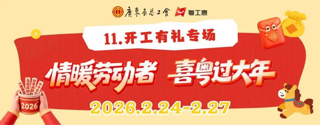假期下线,富贵上线 广东省总工会 情暖劳动者 喜粤过大年 线上送温暖系列活动 最后一场活动来啦! 5850份开工下午茶 1200份灯会门票 正在向你招手