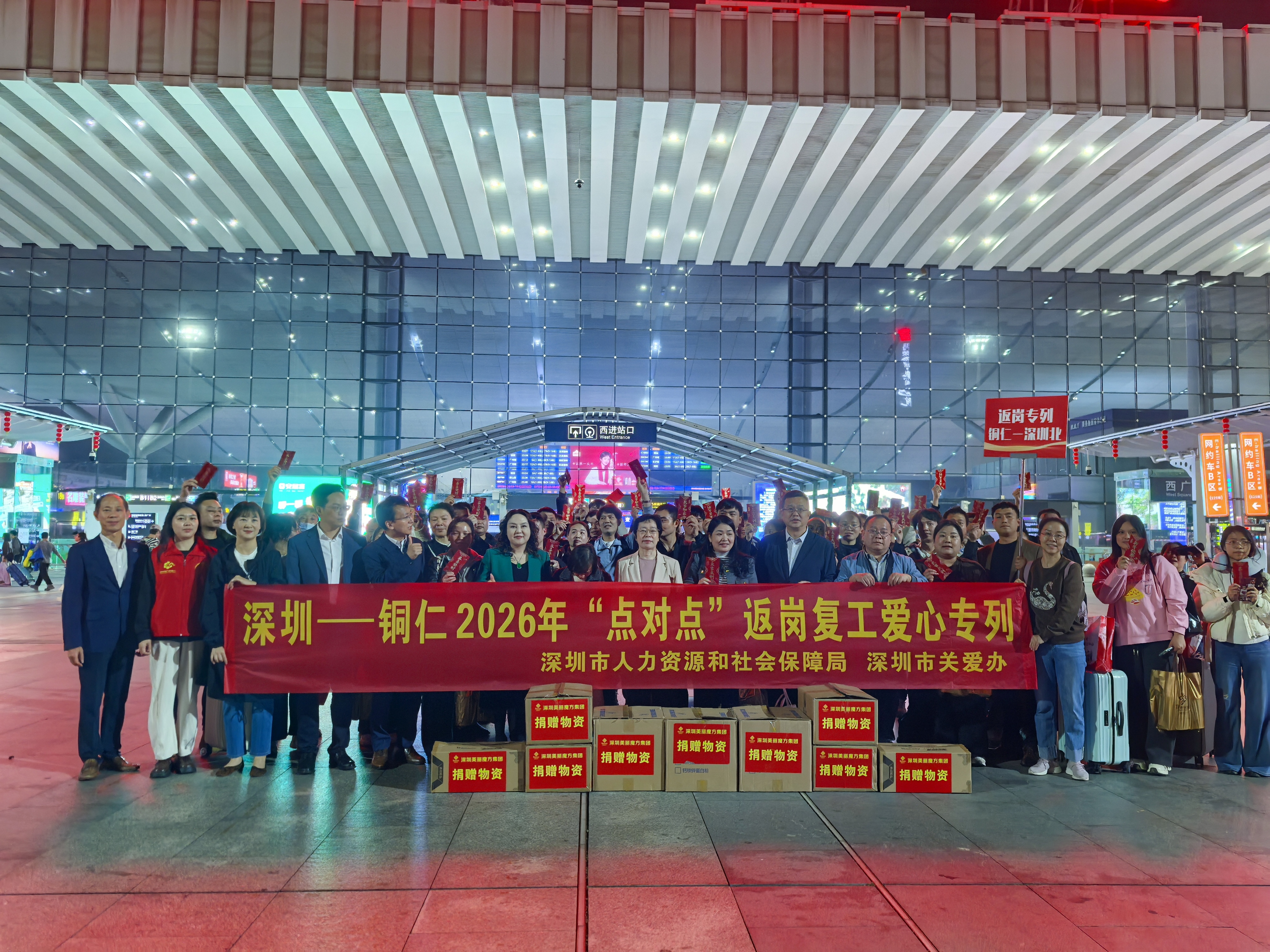 当晚的出站口很热闹。“欢迎回深!”深圳市人力资源保障局、市关爱办负责人早已等在出站口,为返深务工人员们递上“开工暖心礼包”。