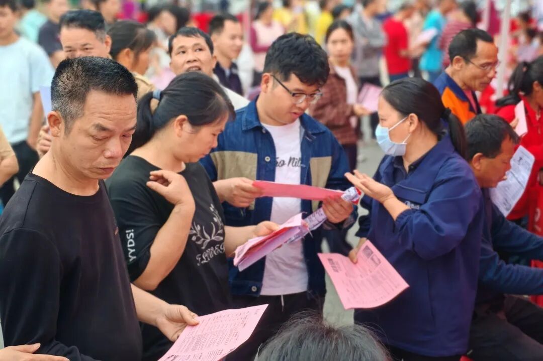 招聘会现场人潮涌动,气氛火爆。求职者们手持精心准备的简历,穿梭于各企业展位之间,仔细浏览招聘信息,主动与企业招聘代表深入交流,详细咨询岗位要求、薪资待遇、职业发展前景等情况。据统计,活动当天共吸引超过3000人次求职者进场应聘,现场达成初步就业意向1026人,意向达成率超过40%,实现了求职者与用人单位的“双向奔赴”。