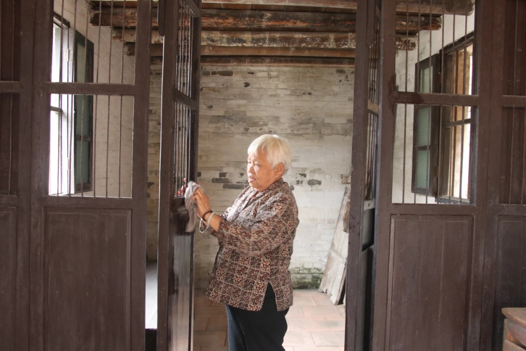 谭惠芳在明城镇谭天度故居义务清洁。曾锦峰摄