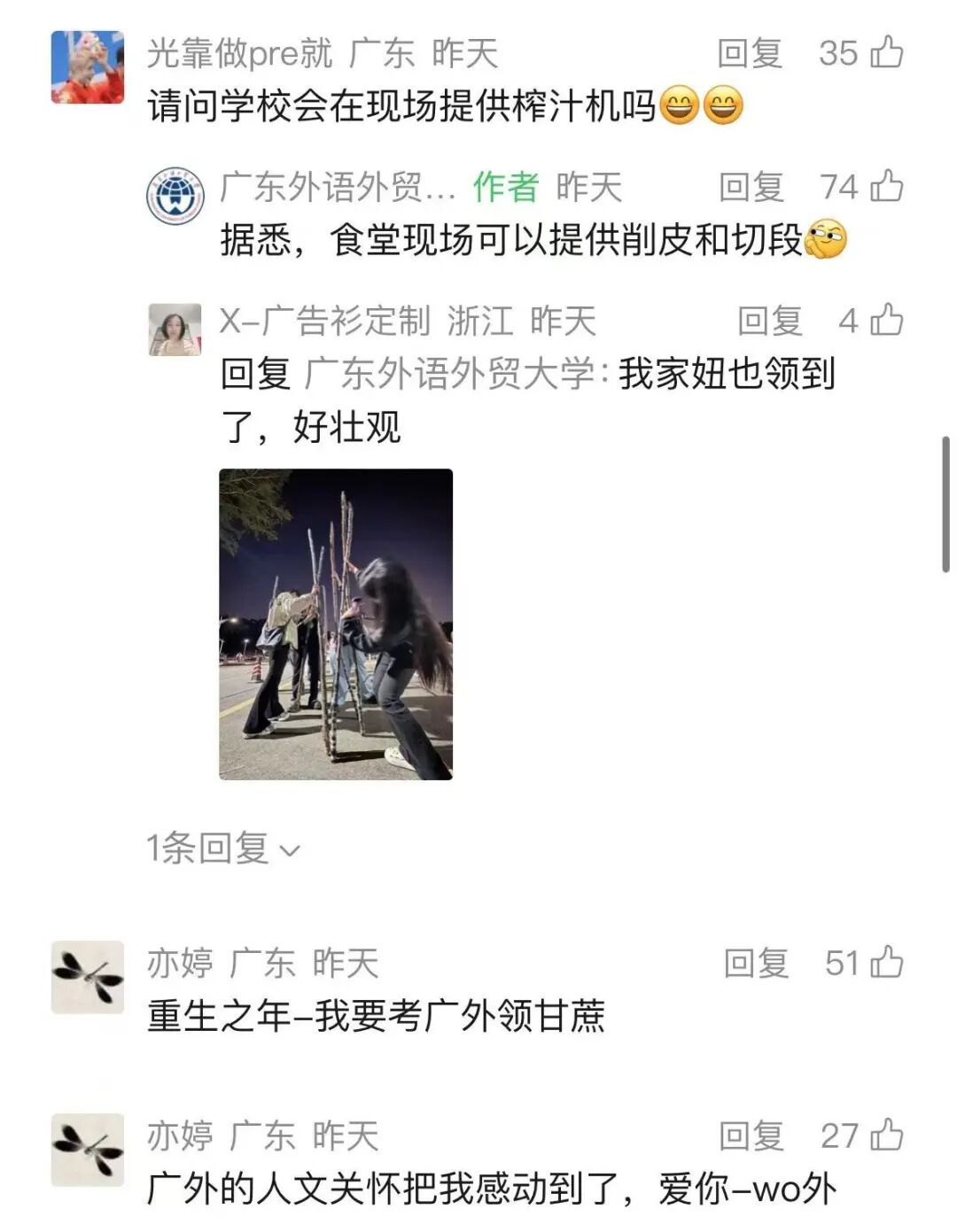 3月17日,南都N视频记者从广东外语外贸大学了解到,一批爱心甘蔗在两校区、饭堂及家属区同步发放,供全体师生免费领取。