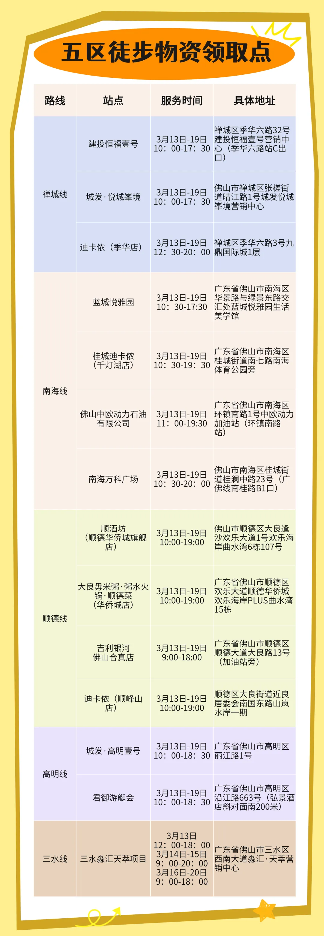 二、选择邮寄的市民,可能存在芯片无法正常使用的风险,选择邮寄的物资在邮寄前已完成对芯片检测,所收到芯片可直接绑定,如需再次检测芯片,可在各物资领取点开放期间前往现场检测,物资领取点服务时间可见下图。