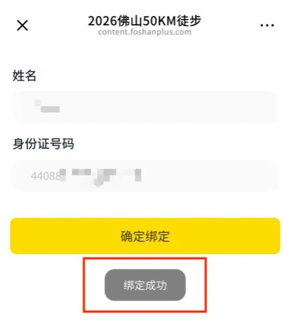 输入完报名信息后,点击“确定绑定”,出现“绑定成功”的字样,则表示已完成芯片绑定操作。