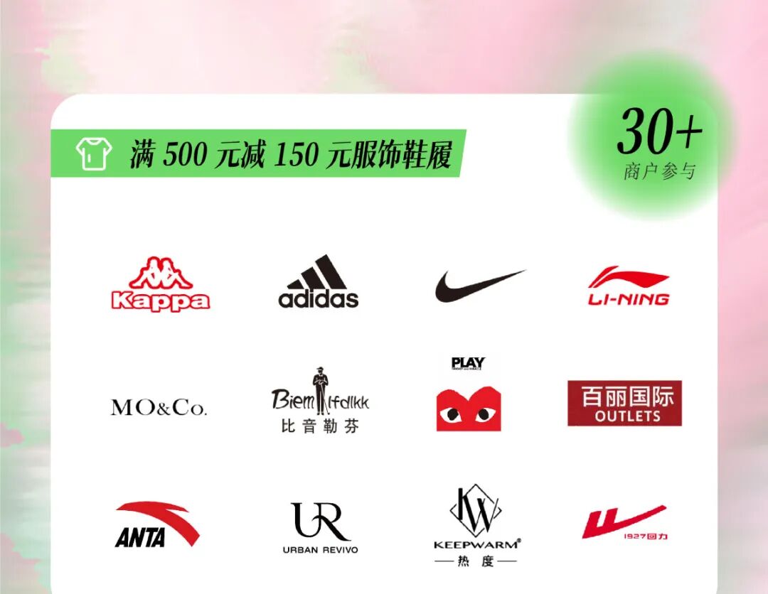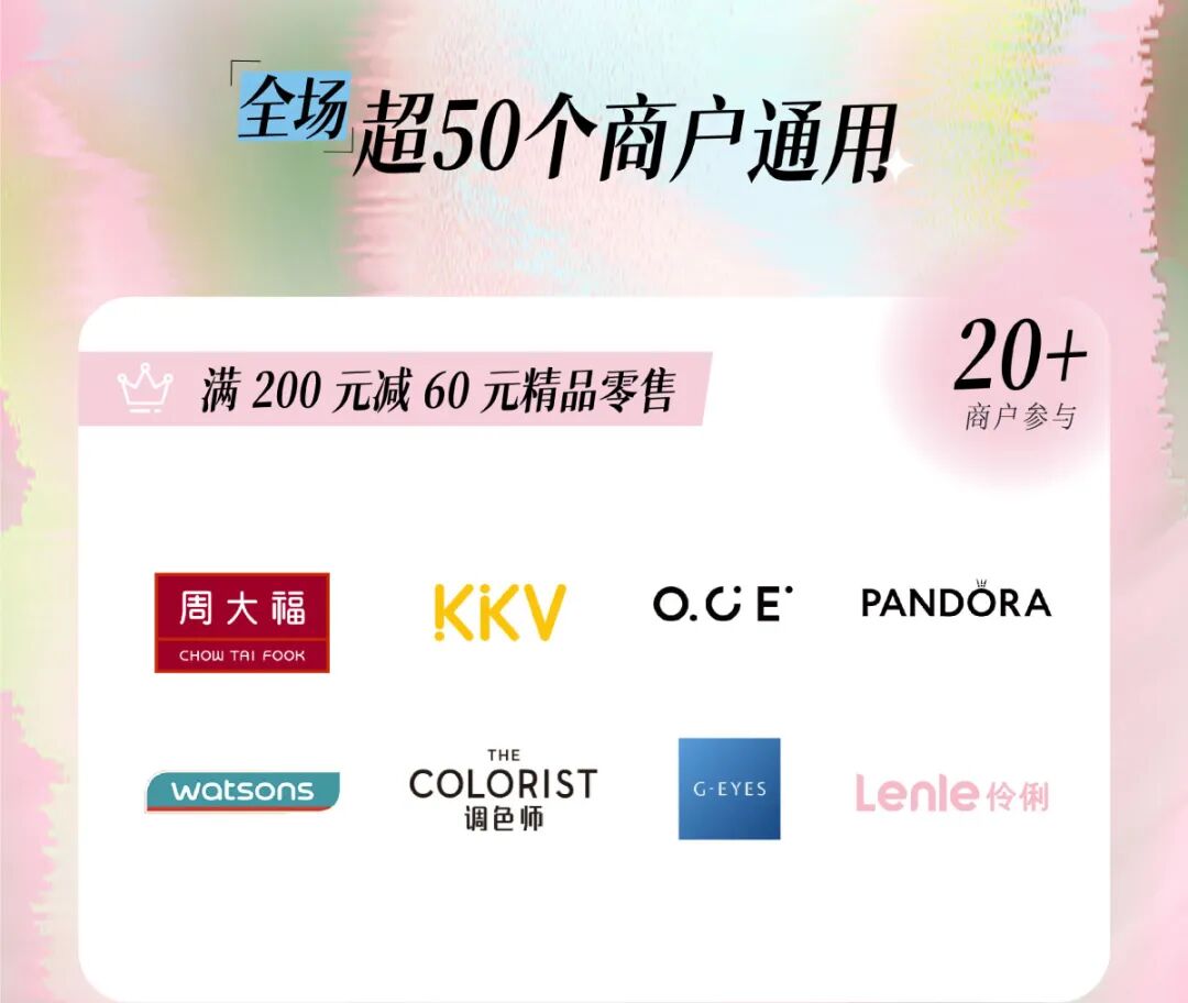 满减券在全场50+商户通用!调色师、屈臣氏、绿光派对、UR、火石健身等人气品牌统统参与。