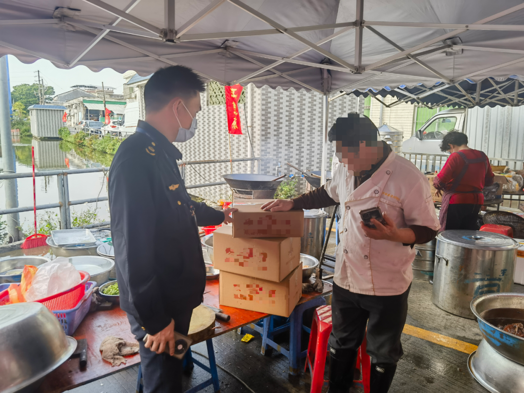 执法人员提前两周与各村居负责人、庙诞理事逐一对接,详细了解聚餐时间、场地布局、预估人数、菜单品种、厨师来源等8项关键信息,建立“一村一档”管理台账。对规模超500人的聚餐,提前上门指导场地选址、厨房搭建,严格落实农村集体聚餐报备制度,确保每一场宴席“先报备、后开席”。