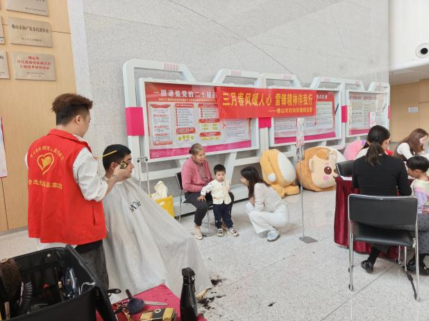 今天刚好是二月初二“龙抬头”的日子,在“爱心义剪”区,受邀来的理发志愿者动作娴熟、笑容亲切,为有需要的患者家属、老年患者及小朋友们提供免费理发服务。一推一剪之间,剪去了疲惫,带来了清爽与便利,让就诊群众以更好的状态迎接新的一天。