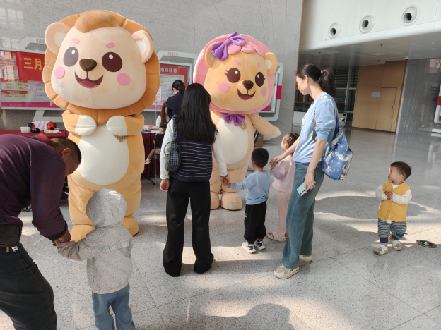 活动当天,我院吉祥物“安心狮”组合安安、欣欣也来到现场,与小朋友们拉拉手、拍拍照、跳跳舞,吸引不少小朋友过来互动,亲切可爱的形象就这样留在了小朋友的脑海里。