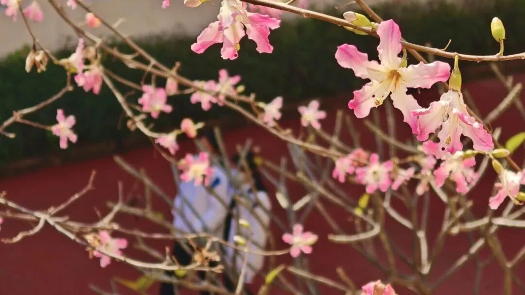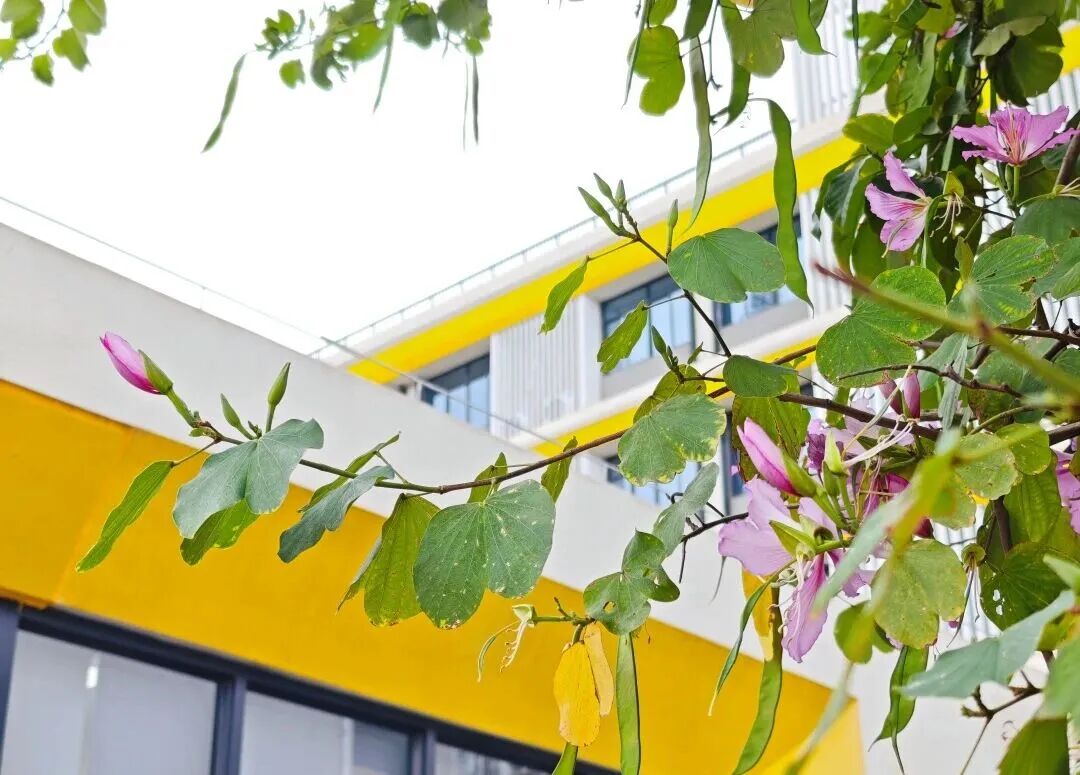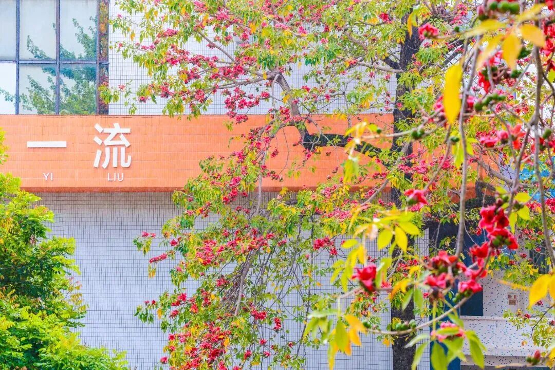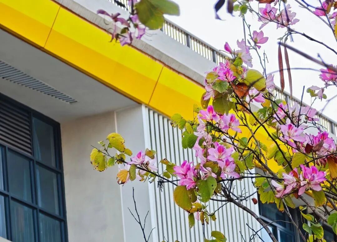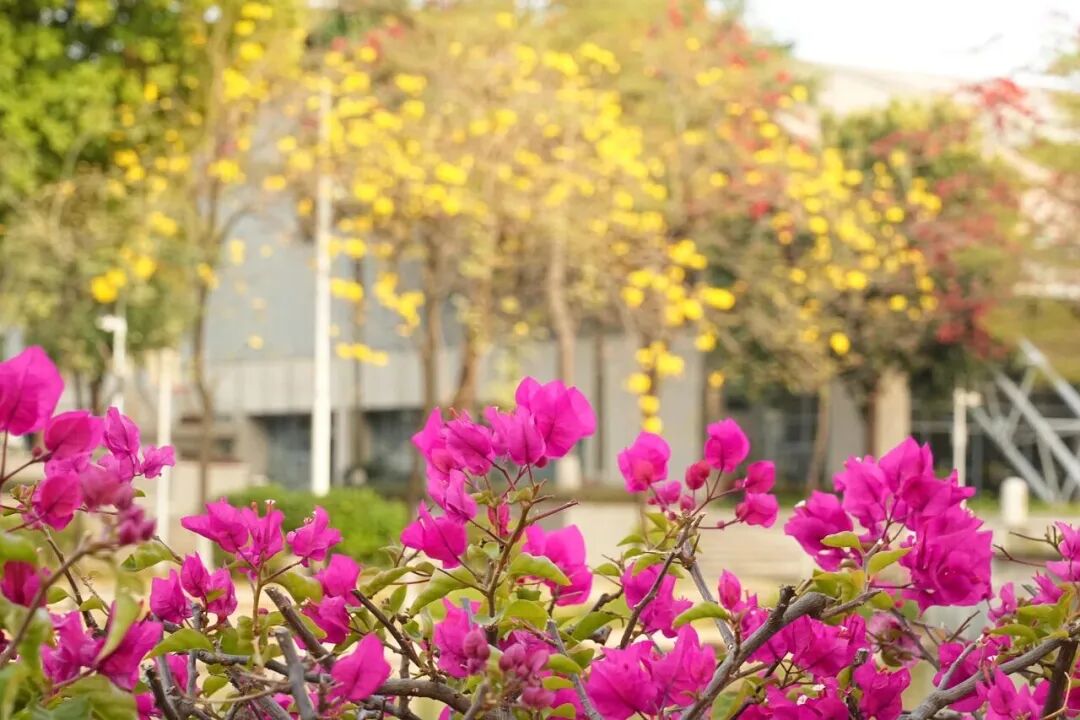 顺德一中的春天 藏在风铃木的明黄里 躲在紫荆的淡紫中 燃在木棉的火红间 绽在三角梅的玫红上