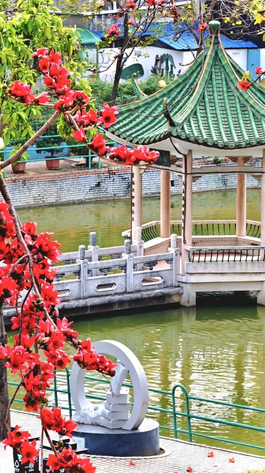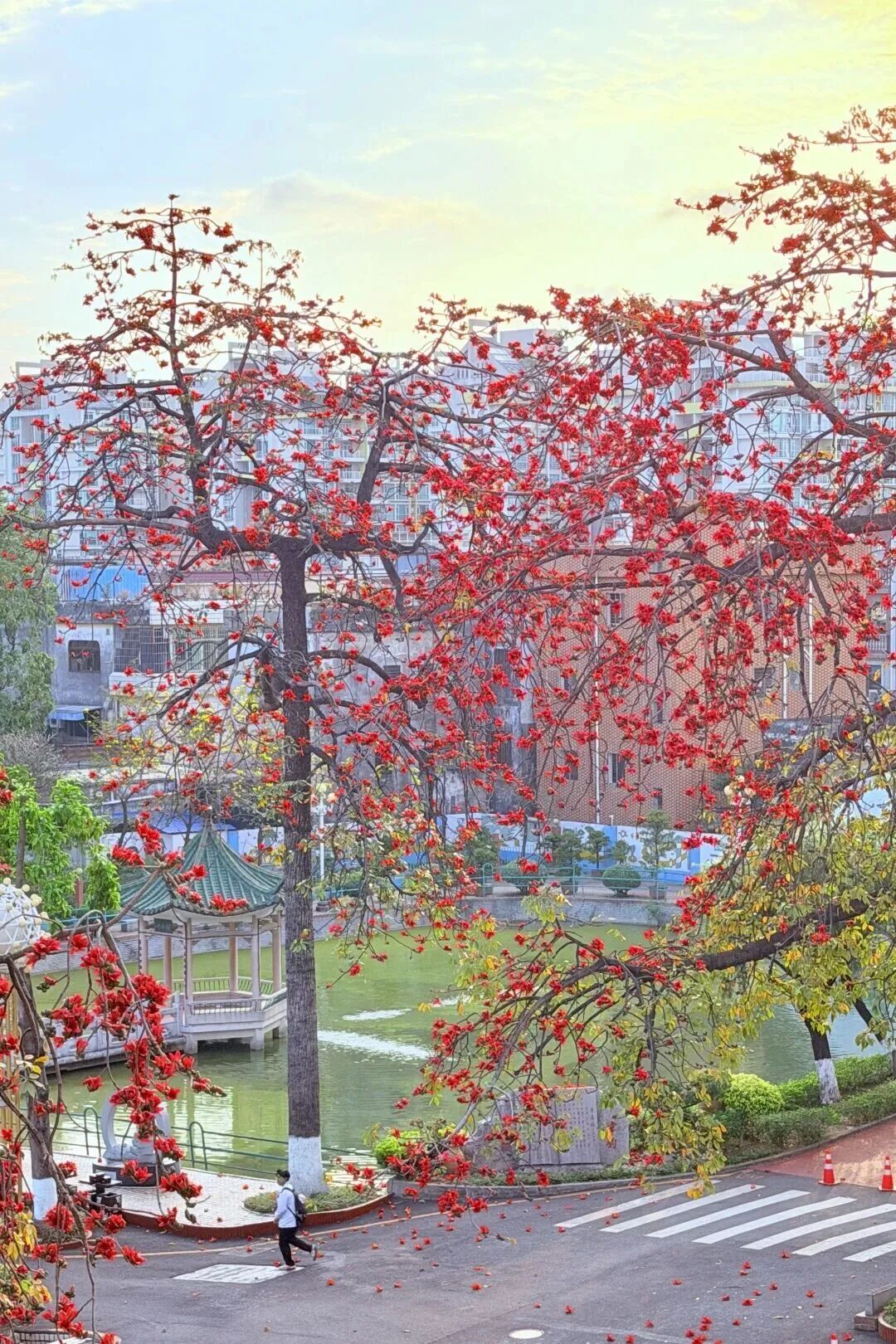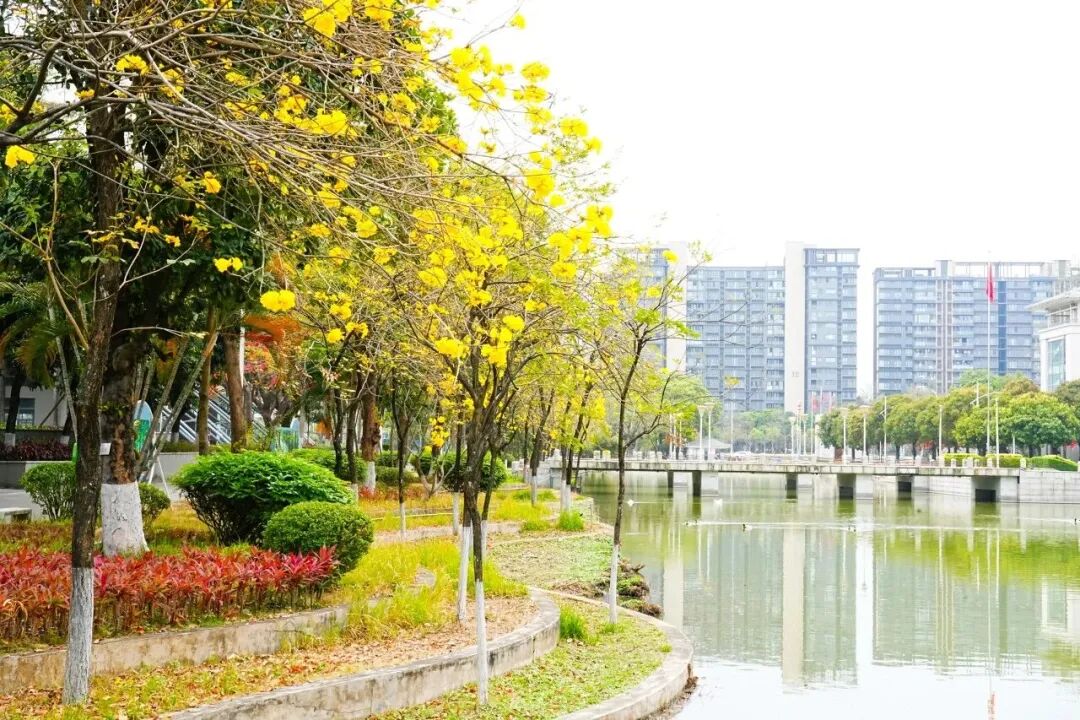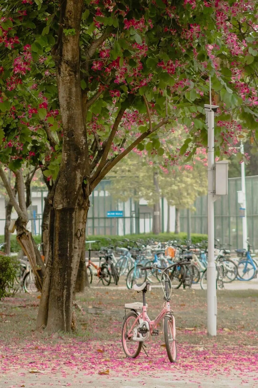 顺德一中的春天 藏在风铃木的明黄里 躲在紫荆的淡紫中 燃在木棉的火红间 绽在三角梅的玫红上