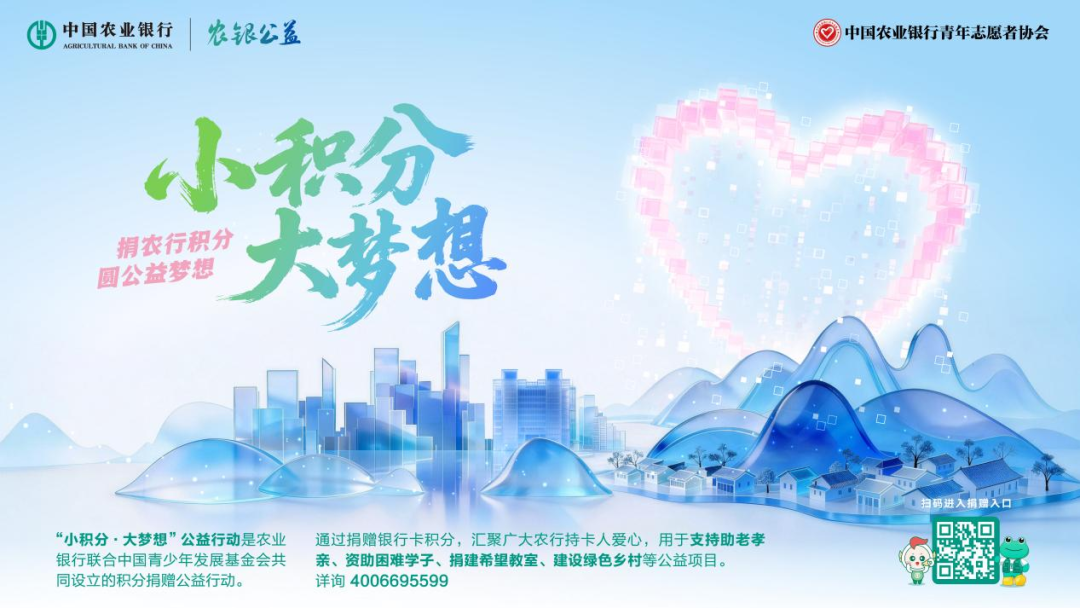 开展“小积分 大梦想”的公益宣传活动,市民平时消费积累的信用卡积分,除了兑换礼品,还能用于支持希望工程、留守儿童关爱等公益项目。