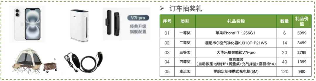 现场设置的订车抽奖,有机会赢取价值5999元的苹果iPhone17大奖!
