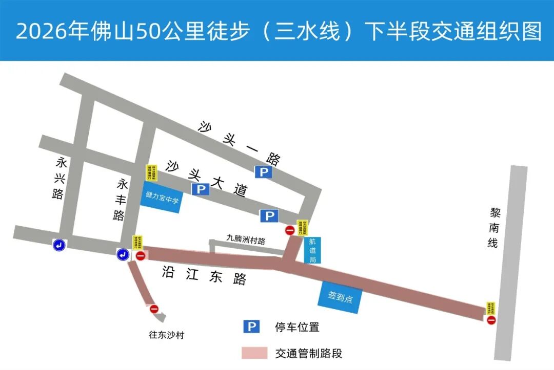 沙头沿江东路(南海区黎南线至沙头永丰路口),禁止车辆通行;