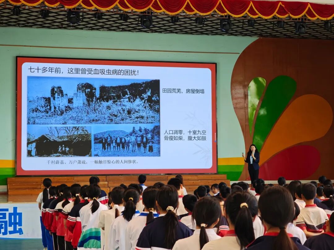 南山镇委党校专职副校长文平走进校园,为同学们带来了主题为“学习陈心陶爷爷,争做时代好少年”的春季学期思政第一课。文平副校长通过珍贵的历史影像、生动的故事叙述,系统回顾了我国寄生虫学奠基人陈心陶教授响应国家号召,毅然扎根南山,以非凡的科学智慧和无私的奉献精神,带领干部群众战胜血吸虫病,将“瘟神”肆虐之地变为山清水秀“天然氧吧”的奋斗历程。