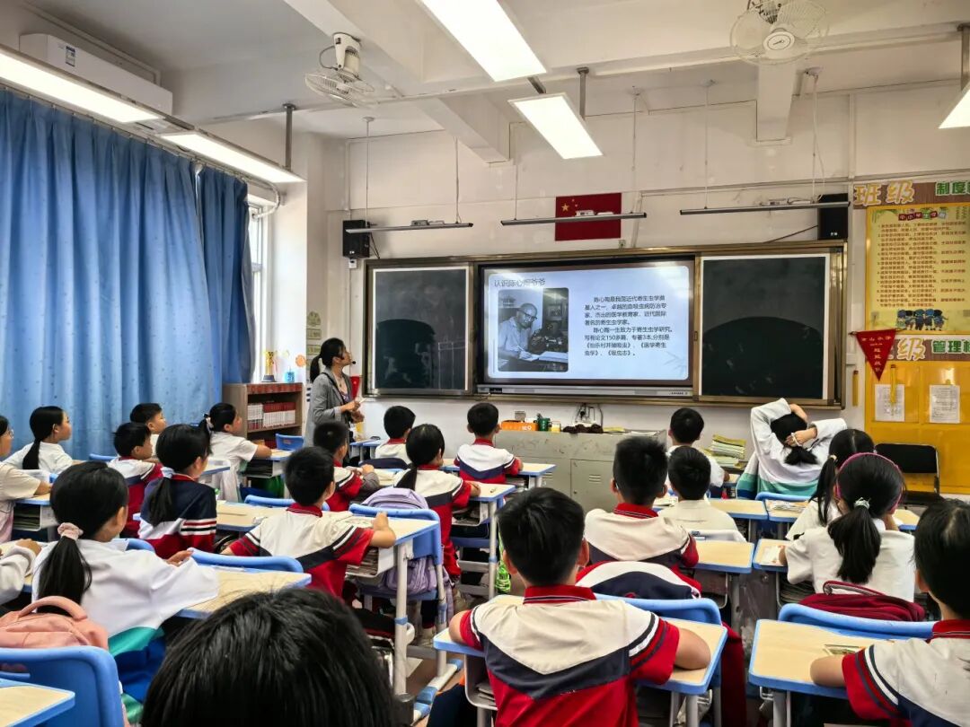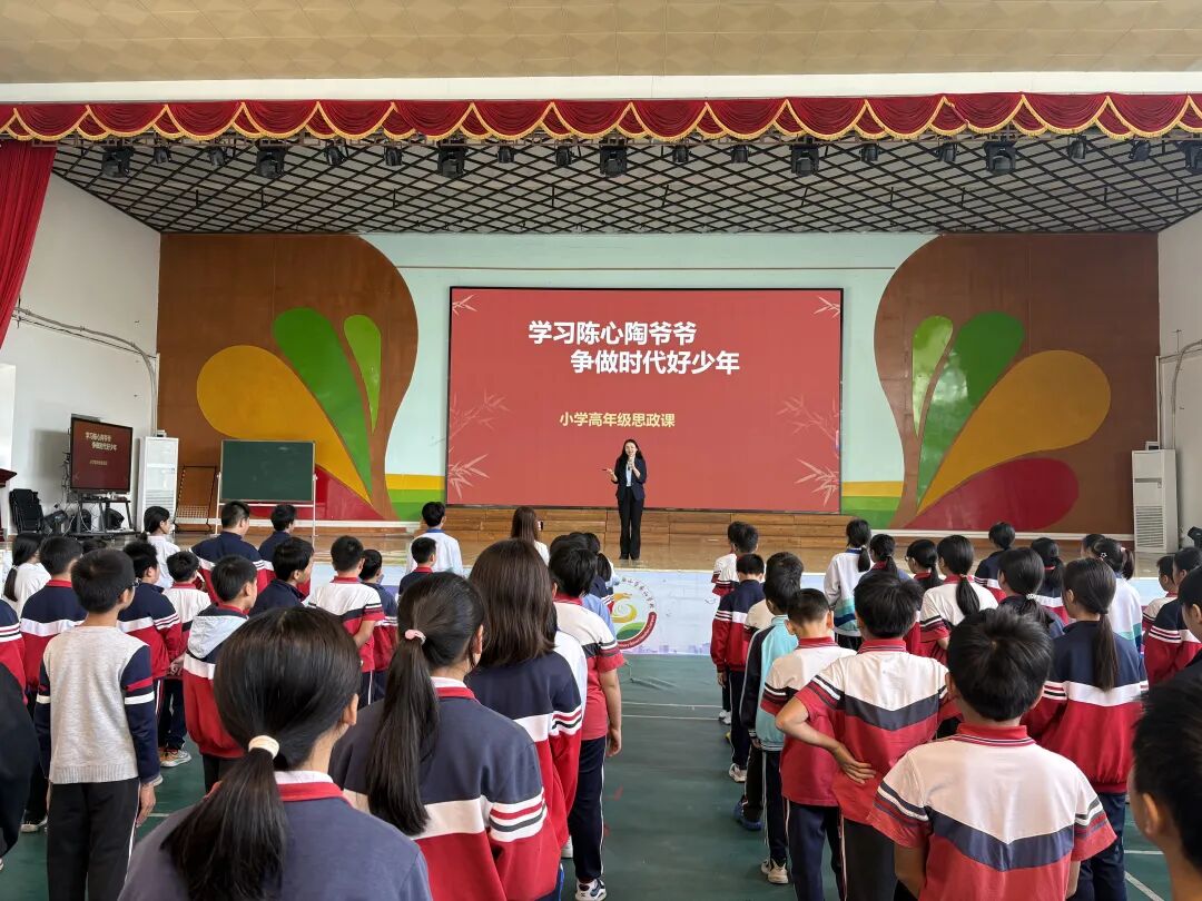 课堂上,同学们聚精会神,踊跃互动,分享自己对陈爷爷爱国、求实、创新、为民精神的理解。课程在全体同学齐声宣读“勤学善思勇担当,争做新时代好少年”的庄严誓言中落下帷幕,现场气氛庄重而热烈。
