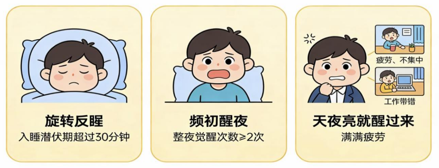 ·入睡困难:卧床超过30分钟仍无法入睡。