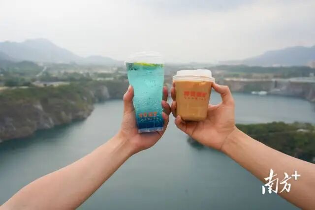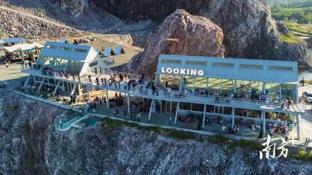 夕阳的金辉如熔金般倾泻而下,位于佛山市三水区南山镇六和村的矿山被镀上一层炽热的琥珀色,悬于崖边的“浮日蓝矿咖啡”如一艘停泊的方舟。