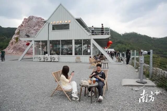 2024年8月签约,次年8月开业,由于刘德江团队在建造过程中持续宣传,加之地方政府推介,“浮日蓝矿咖啡”快速吸引年轻人打卡,爆火社交平台,节假日人流“从山脚堵到山顶”。