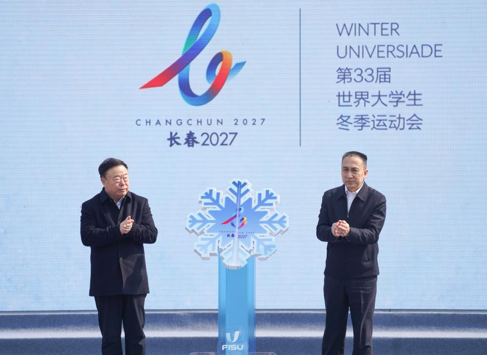 2026年3月21日,长春2027第33届世界大学生冬季运动会会徽在活动现场亮相。新华社记者 许畅 摄