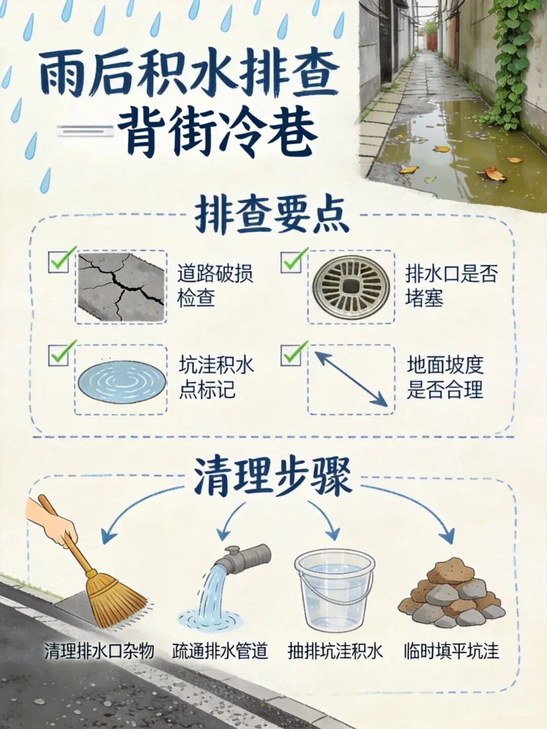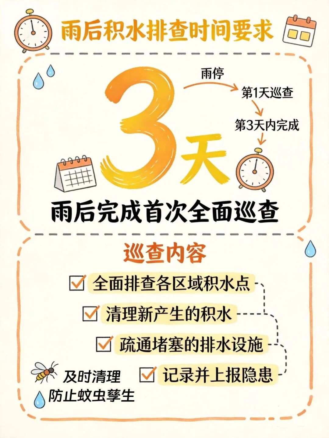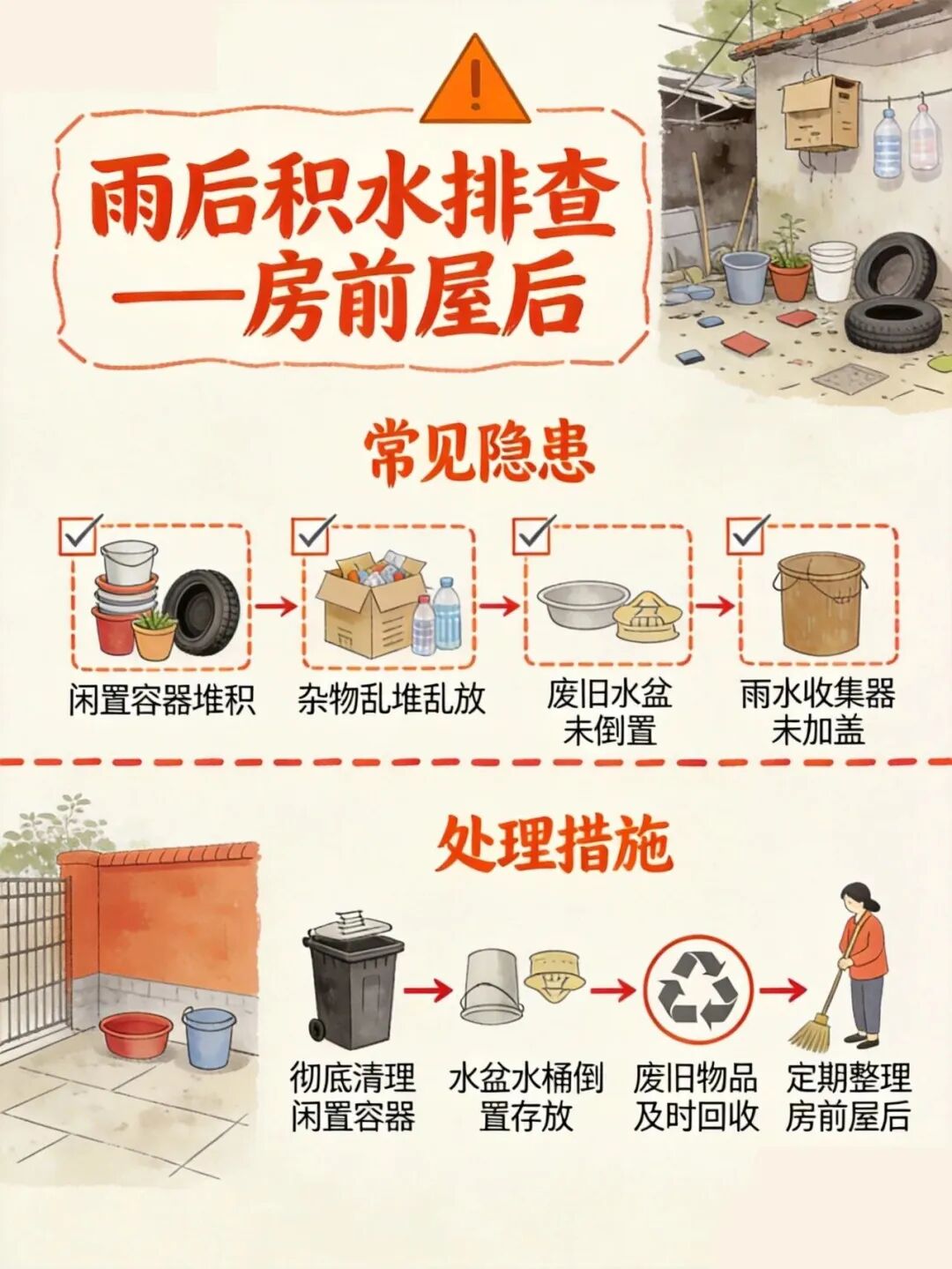 雨后清积水,防蚊虫孳生!重点区域排查清单