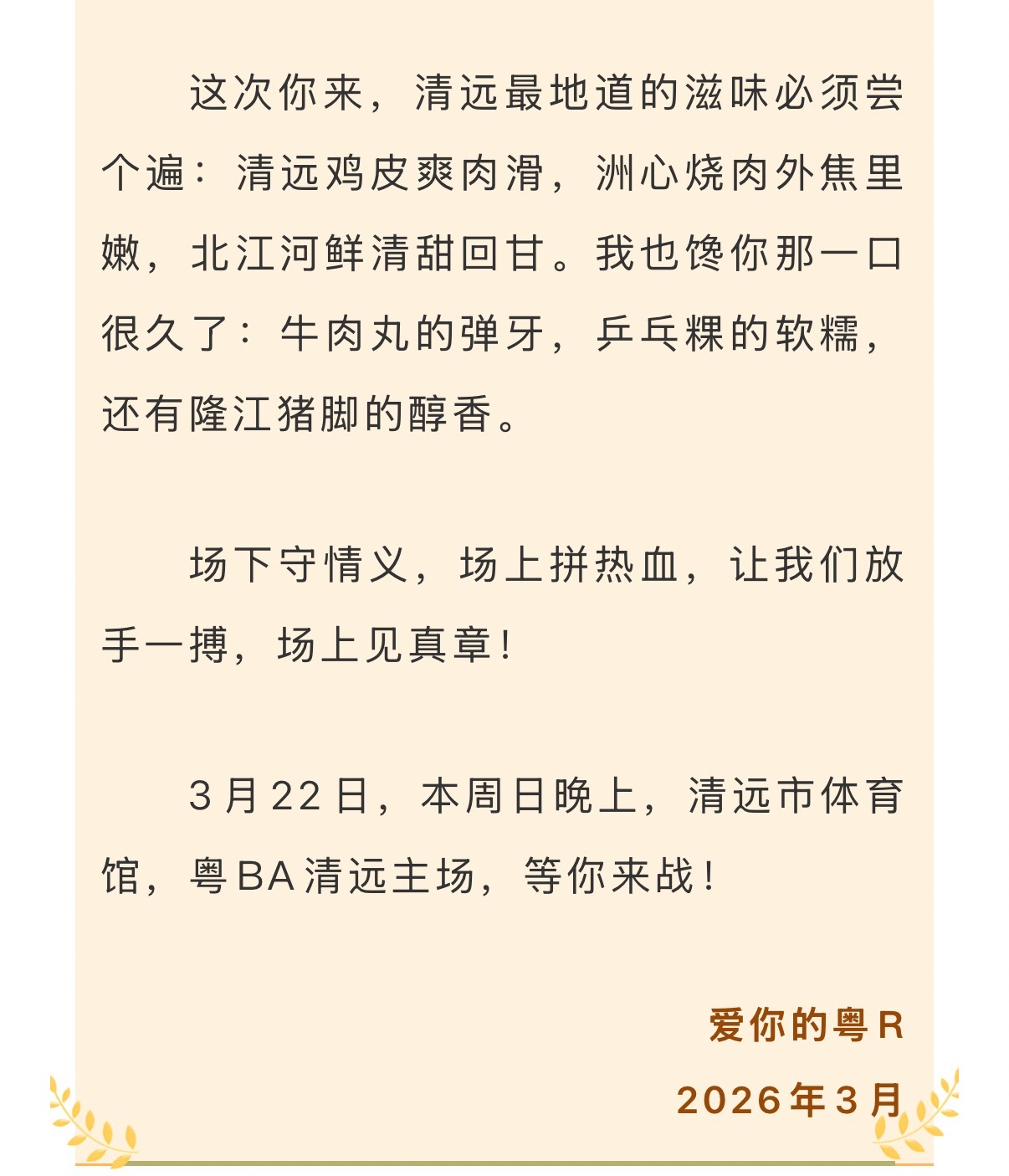 这届粤BA的“书信喊话”,像极了广东人的性格:先喝茶,再讲事;先叙旧,再较劲。
