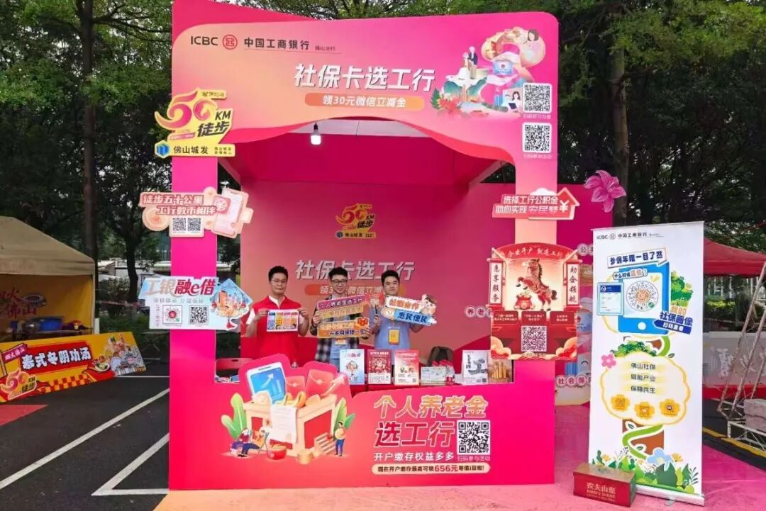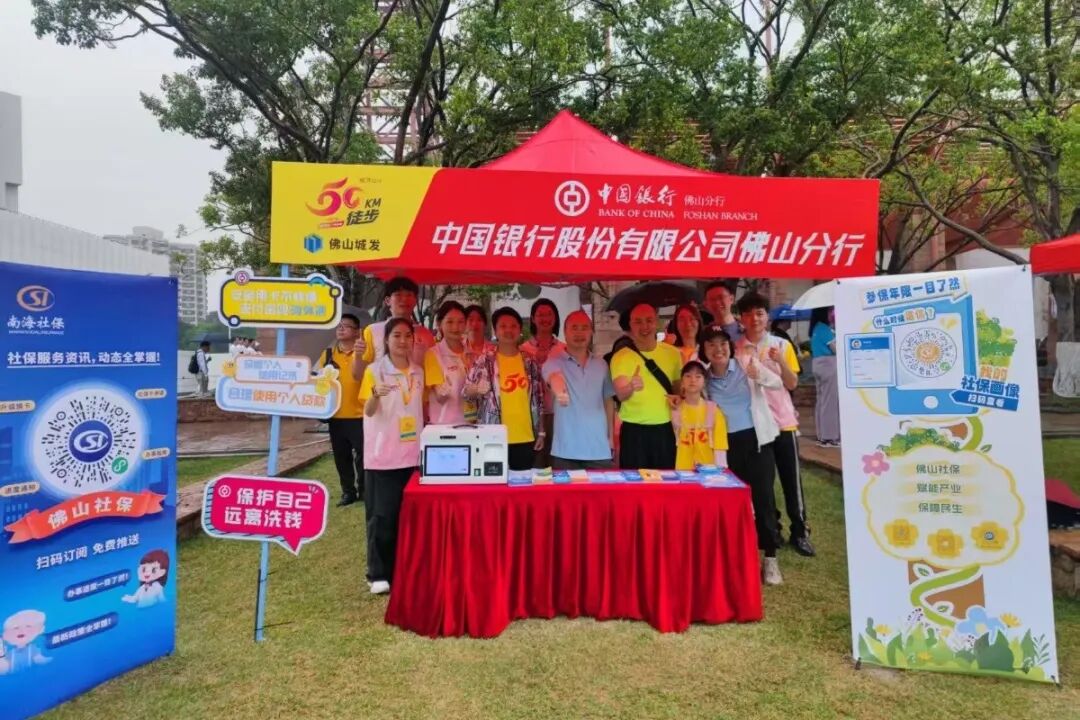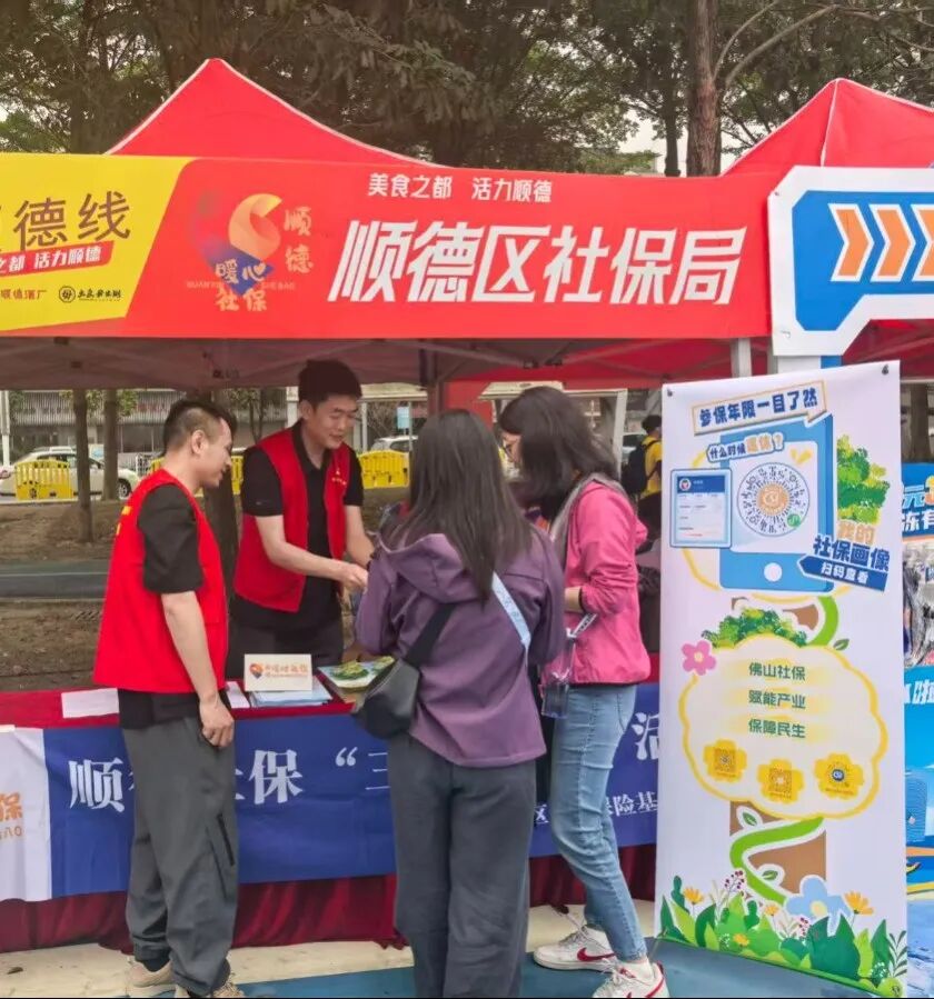 市民走到哪里,服务就跟到哪里。佛山市社保局积极探索多部门合作模式,整合资源、协同发力,在徒步活动现场,携手人社、税务、银行等部门联合开展服务,将社保政策咨询、参保缴费指引、社保卡办理等便民事项送到市民身边,让群众切实感受到社保服务的便捷与温度。其中,市社保局与工商银行、农业银行、中国银行、建设银行等银行加强社银合作,在全市徒步沿线设置了多个宣传服务点,积极开展个人养老金等的社保政策宣传。