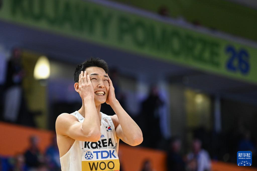 3月21日,韩国选手禹相赫在比赛中。他和牙买加选手理查兹获得并列季军。