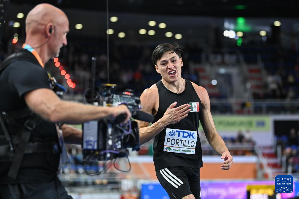 3月21日,墨西哥选手波蒂略在比赛中庆祝。他获得亚军。