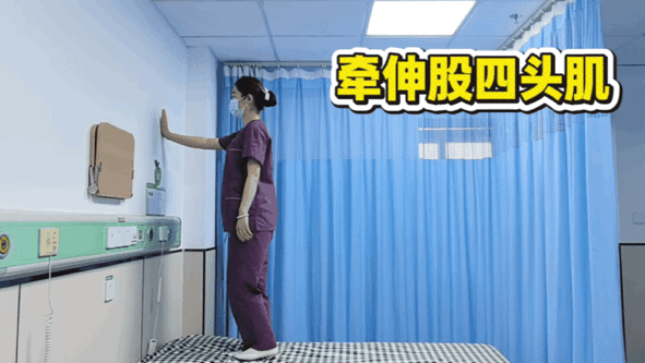 侧卧,或站立时扶墙保持平衡。将同侧脚跟拉向臀部,注意双膝并拢,不要将膝盖向外侧打开。若感觉膝盖不适,不要过度用力。