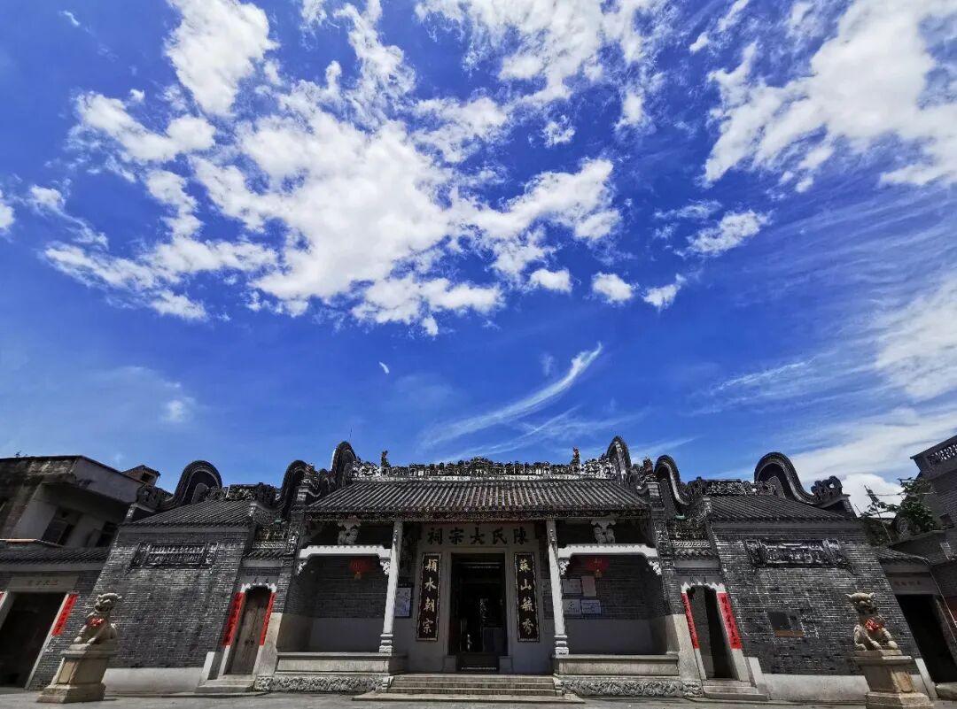 行至三水环两江一号公路白坭段旁的白坭祠巷村,陈氏大宗祠静静伫立在樵桑联围内侧,古祠威严,烟火绵长。抬头望去,正门上方的花岗岩石牌匾格外夺目,“陈氏大宗祠”五个大字笔力苍劲、硬朗洒脱,这是明代大儒陈白沙独创的茅龙书法,落款处“白沙敬书”四字,瞬间揭开一段尘封往事。