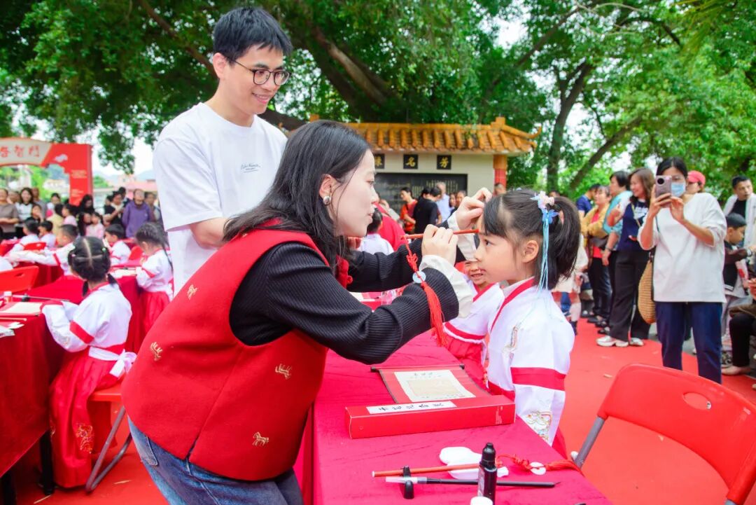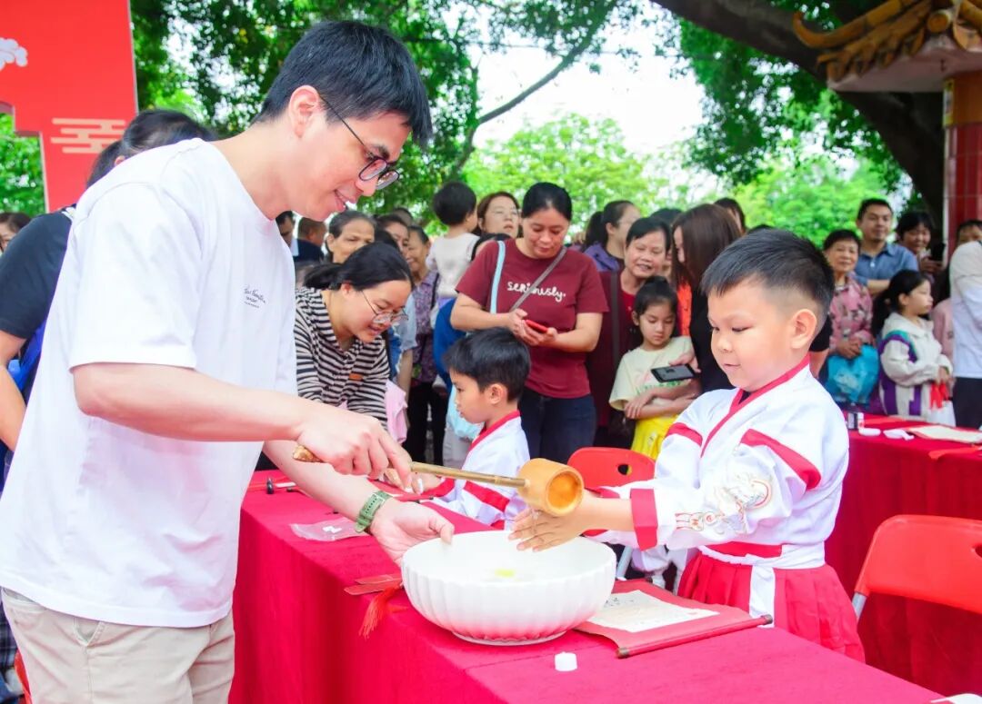 本次活动将传统民俗与崇文重教相结合,邀请村中德高望重的父老乡亲,以及分别毕业于浙江大学、英国爱丁堡大学,并获取硕士学位的两位优秀学子——黄宗杰、黄飞妍返乡,共同为村中即将入学的学童启蒙开智。活动同期还举办了热闹非凡的千人濑粉宴,全村老少欢聚一堂,共叙乡情。