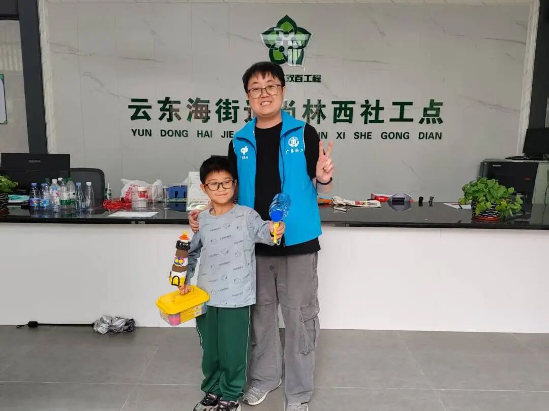 这个春天,云东海街道社工站和街道慈善会联手,为孩子们打造了一场别开生面的生日会。当第一季度的生日惊喜撞上世界水日,会擦出怎样的火花?一起去瞧瞧这场充满欢乐与知识的奇妙派对吧。 趣味开场:“南水北调”大作战 活动一开始,14位小朋友就被分成了两组,摩拳擦掌准备开启“南水北调”大作战。游戏规则很简单,两人一组,各拉住两条绳子把橡皮筋拉紧,橡皮筋上固定着装了水的纸杯,要一起协作把水从起点运到终点,倒进透明容器里,最后运输水多的一组获胜。 “预备,开始!”随着社工的一声令下,小朋友们立刻全神贯注起来。有的小组配合得天衣无缝,步伐一致,稳稳地把水送到了终点;有的小组则手忙脚乱,水洒了一地,引得大家哈哈大笑。“慢点慢点,稳住!”“加油加油,我们快超过他们啦!”现场的呐喊声、欢笑声此起彼伏。经过几轮激烈的比拼,最终获胜的小组欢呼雀跃,没获胜的小朋友也毫不气馁,纷纷表示下次一定要赢。这个小游戏不仅让孩子们在快乐中体会到了团队协作的重要性,还让他们直观地感受到了“南水北调”工程的不易。 知识课堂:动画科普涨知识 热闹的游戏过后,就到了孩子们最喜欢的动画科普时间!大家围坐在一起,津津有味地观看起了南水北调、水循环、节水知识的趣味动画视频。视频里,可爱的卡通人物用生动有趣的方式,把复杂的水利知识讲得通俗易懂。“原来水是这样循环的呀!”“南水北调工程真伟大,能让那么多地方的人用上干净的水!”孩子们一边看,一边忍不住发出阵阵惊叹。 视频结束后,社工又给大家进行了详细的讲解。“小朋友们,我们地球上的水资源虽然看起来很多,但能被我们直接利用的淡水却很少很少。所以我们一定要节约用水,从身边的小事做起。”社工还通过提问的方式,和孩子们互动起来。“谁知道洗完手后应该怎么做?”“及时关掉水龙头!”“那淘米水可以用来做什么呢?”“可以用来浇花!”孩子们积极举手回答,现场气氛十分活跃。通过这一环节,节水护水的种子在孩子们的心中悄悄种下。 创意手工:变废为宝乐趣多 最让人期待的手工环节是利用废弃的塑料水瓶,制作有趣的小物件。桌子上摆满了塑料水瓶、轻黏土、喷壶头、热熔枪等工具,孩子们迫不及待地动起手来。 这边,有的小朋友用轻黏土在塑料水瓶上装饰出各种漂亮的图案,小心翼翼地搭建起灯塔的造型,不一会儿,一个个色彩斑斓、造型独特的灯塔就诞生了;那边,有的小朋友则专注地用热熔枪把喷壶头和塑料水瓶粘在一起,制作简易水枪。“老师你看,我的水枪做好啦!到时家里的浇花工作就交给我!”一个小朋友兴奋地举着自己的作品向社工展示。大家发挥着自己的想象力和创造力,把原本不起眼的塑料水瓶变成了一个个充满创意的宝贝。在这个过程中,孩子们不仅锻炼了动手能力,还深刻理解了“变废为宝”的环保理念。 欢乐收尾:定格美好瞬间 活动的最后,全体小朋友手持自己的作品,一起拍下了大合照。镜头里,孩子们的脸上洋溢着灿烂的笑容,眼神里充满了自信和自豪。这一张张笑脸,不仅记录下了这次生日会的美好瞬间,更见证了孩子们在快乐中成长、在学习中进步的点点滴滴。 这场融合了生日惊喜与节水知识的活动,不仅让孩子们度过了一个难忘的生日,还让他们在轻松愉快的氛围中学习到了节水护水的知识,增强了环保意识。同时,通过和不同的小伙伴一起游戏、学习、创作,困境儿童也更好地融入了集体,感受到了来自社会的温暖和关爱。 期待下次我们还能一起,在欢乐中探索更多有趣的知识,收获更多的成长与快乐!